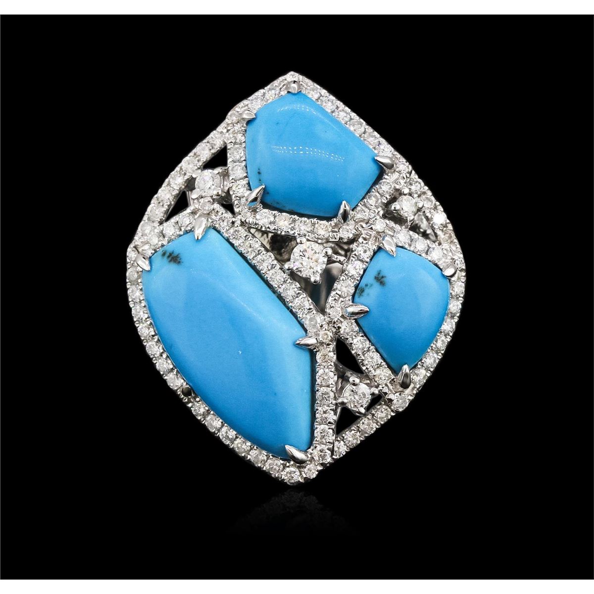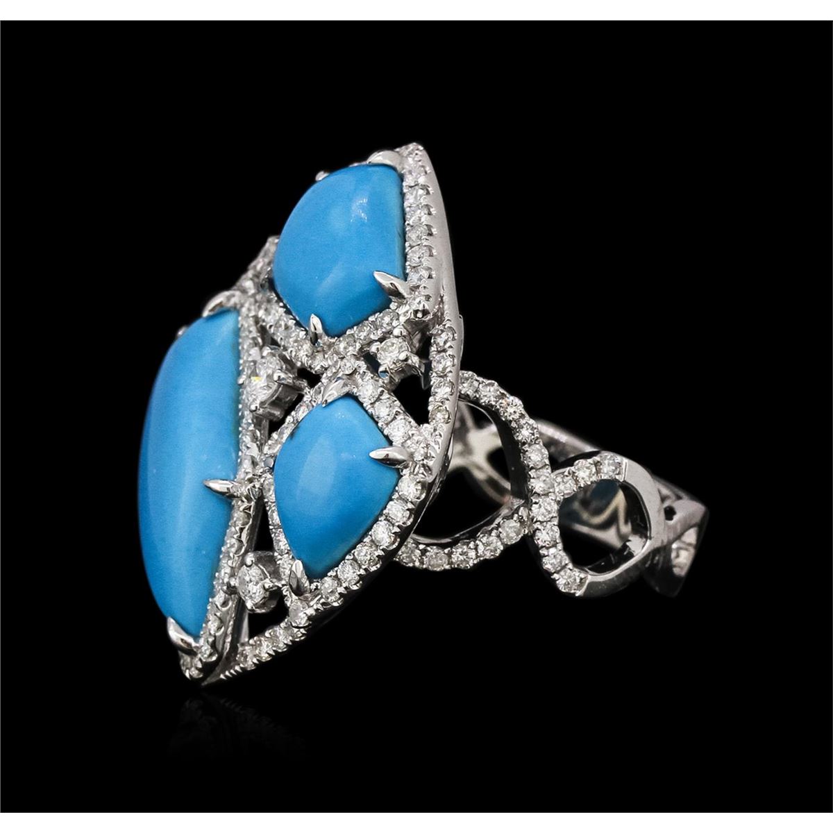 One ring featuring: 14KT white gold weighing 7.50 grams containing three turquoise center stones and 134 round diamonds for a total diamond weight of 1.00ct.