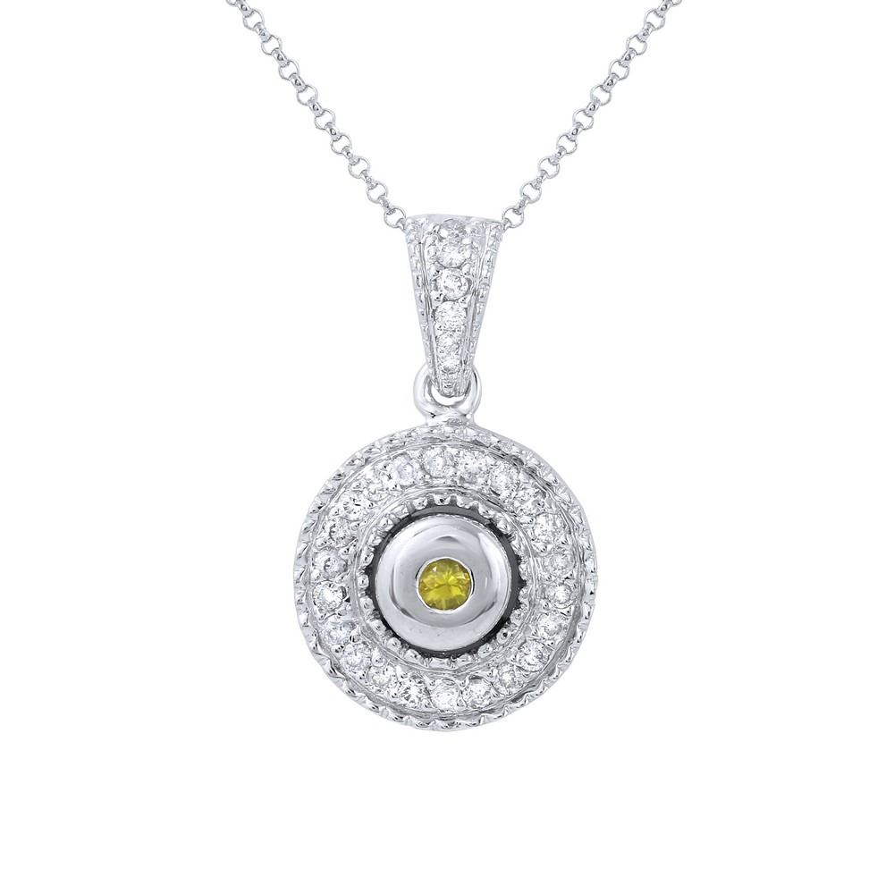 14KT White Gold Yellow Sapphire and Diamond Pendant with Chain
