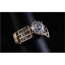 Lot 134 14KT YELLOW GOLD AND DIAMOND RING Center stone being 2.26ct in a six prong setting. Flanking the central stone are fifteen bezel set diamonds on each side in three rows. Shank marked â14Kâ. 3.46 TW. CONDITION: Very good. 5-70349