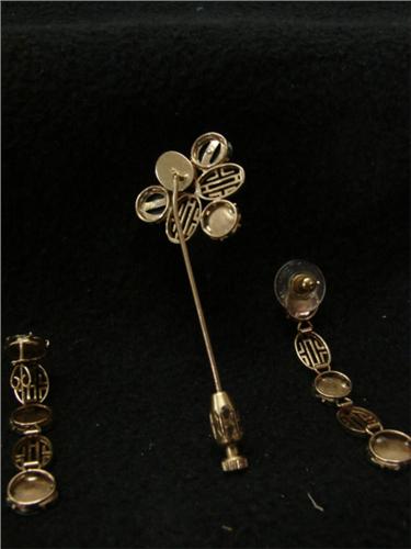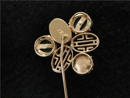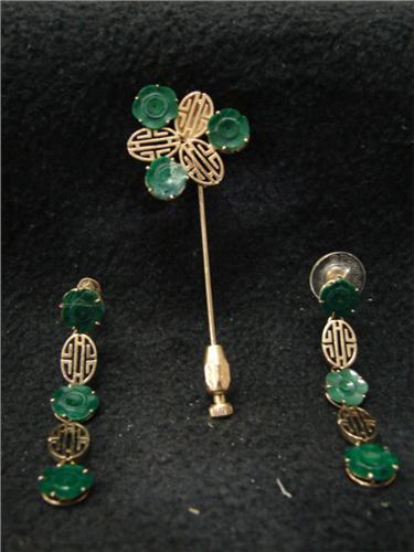 14KT YELLOW GOLD & JADE STICK PIN & EARRINGS.