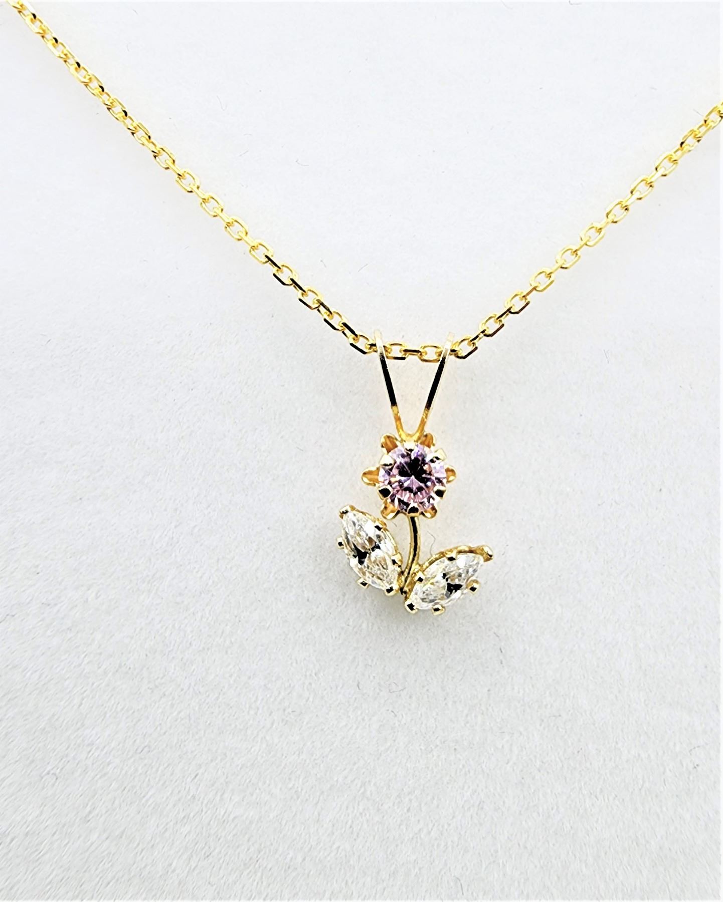 14KT YELLOW GOLD PINK AND WHITE CZ FLOWER