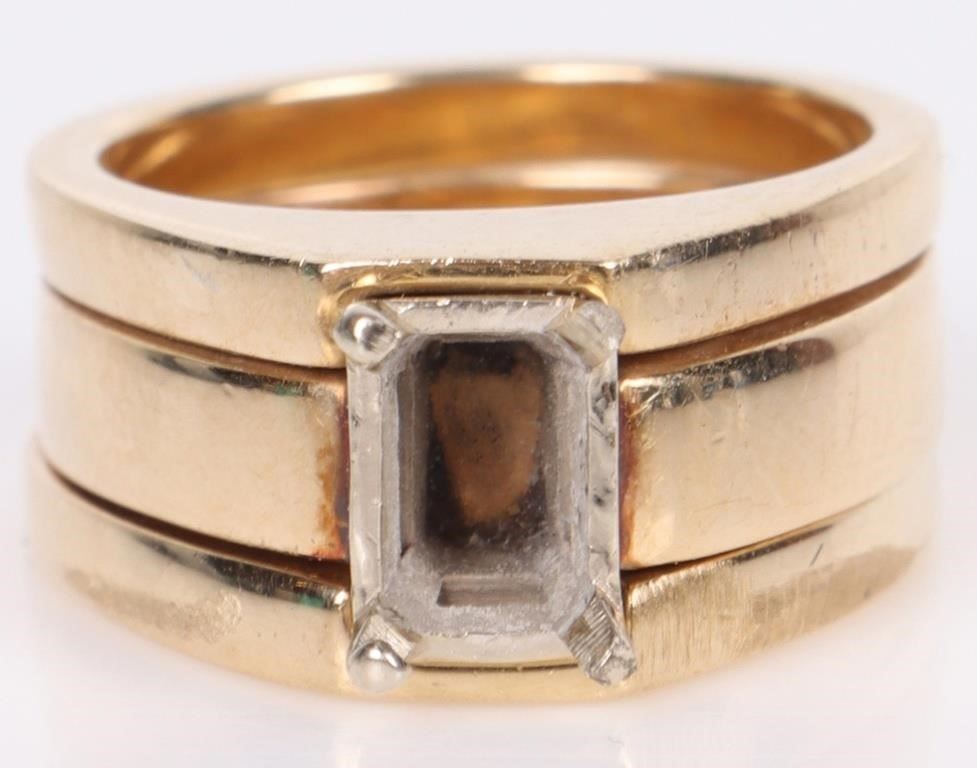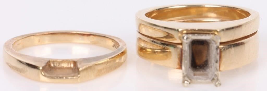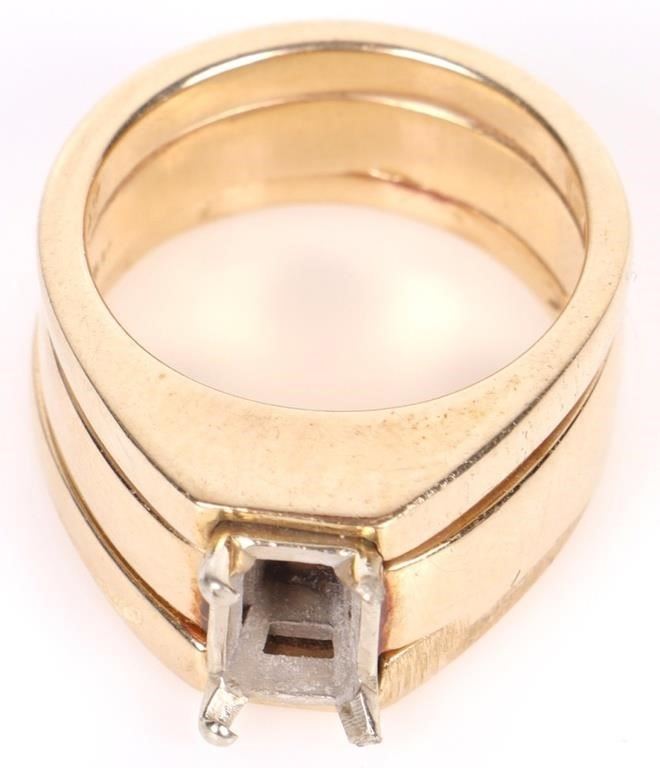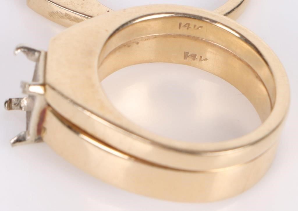 14 karat yellow Gold Wedding Ring & Bands. Setting