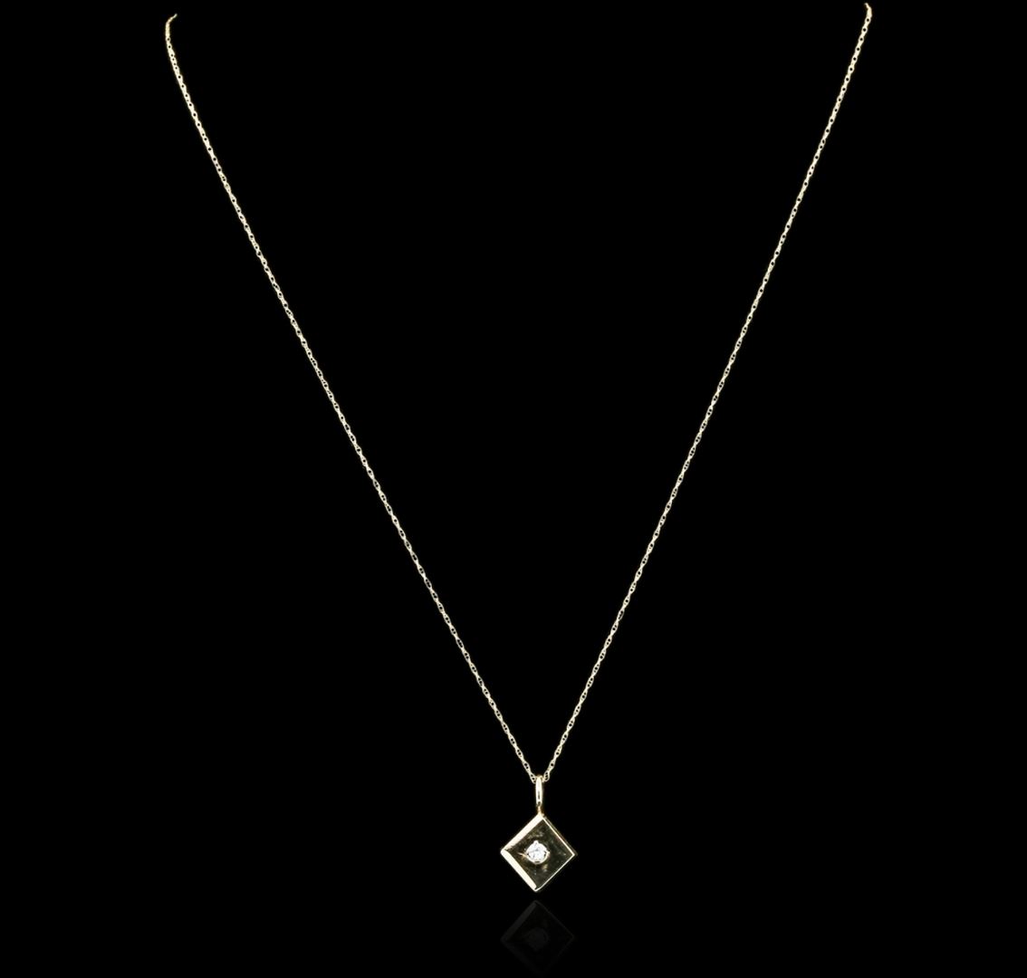 One pendant with chain featuring: 14KT yellow gold weighing 2.50 grams containing one round diamond with a total weight of 0.02ct.