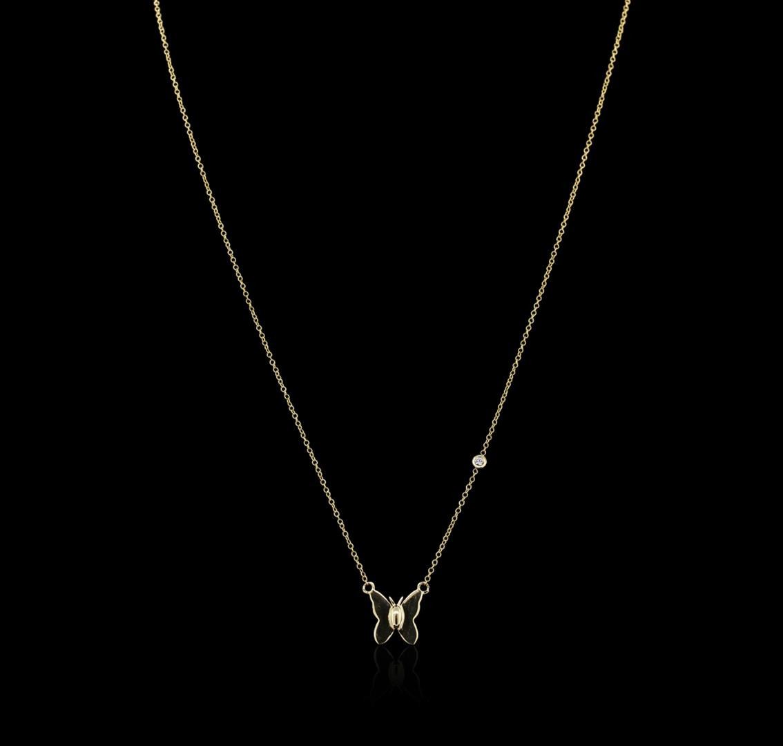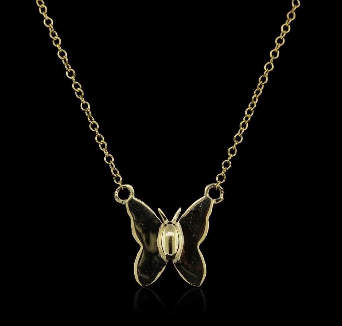 One butterfly necklace featuring: 14KT yellow gold weighing 2.06 grams containing one diamond with a total weight of 0.03ct.