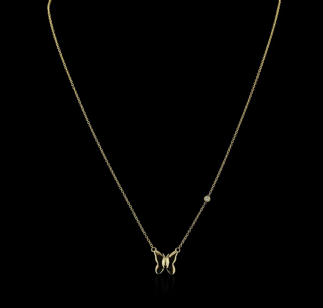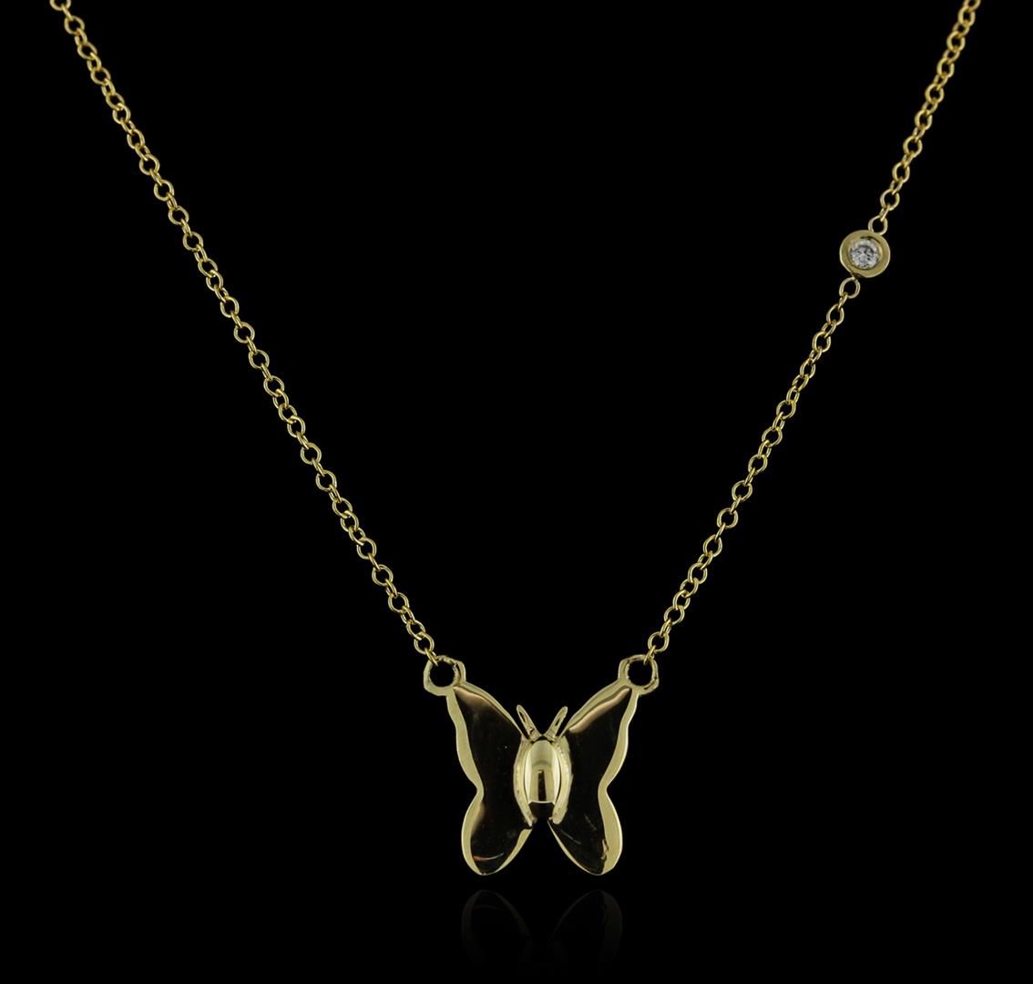 One butterfly necklace featuring: 14KT yellow gold weighing 2.01 grams containing one diamond with a total weight of 0.03ct.