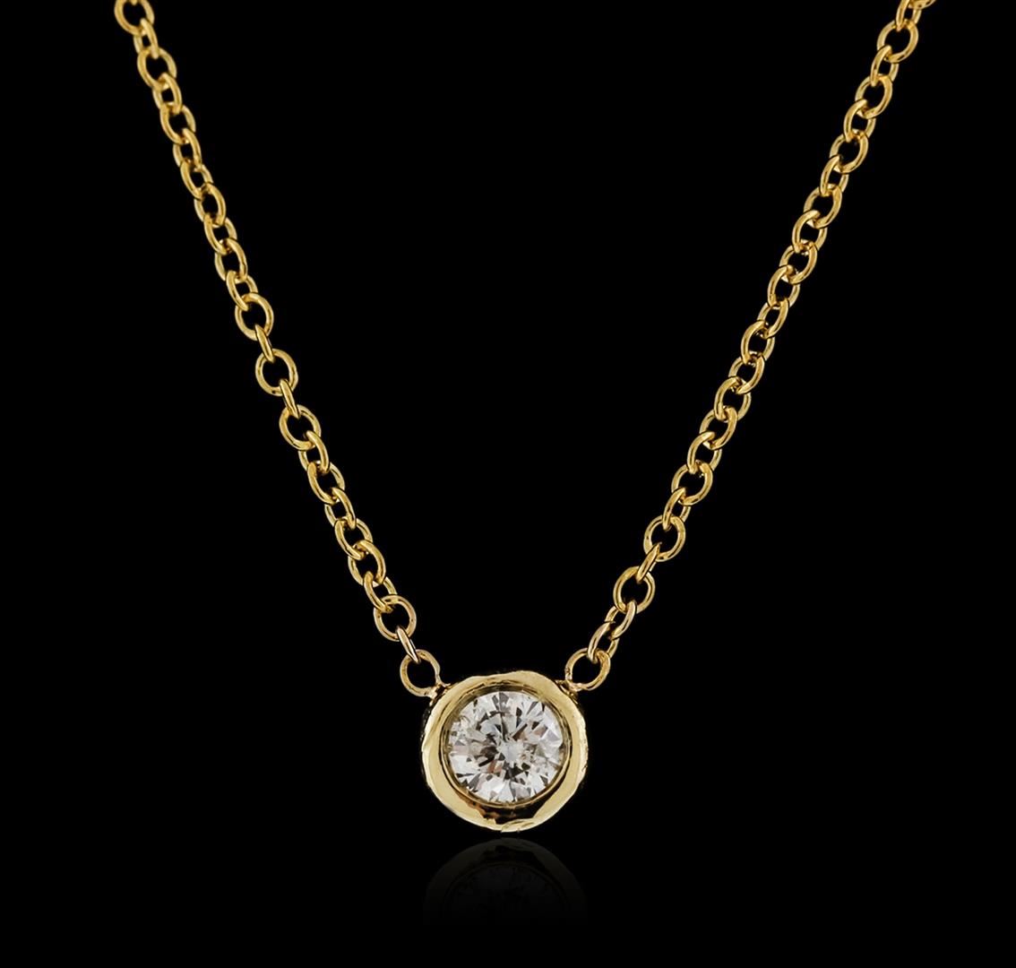 One necklace featuring: 14KT yellow gold weighing 1.65 grams and one round cut diamond weighing 0.09ct.