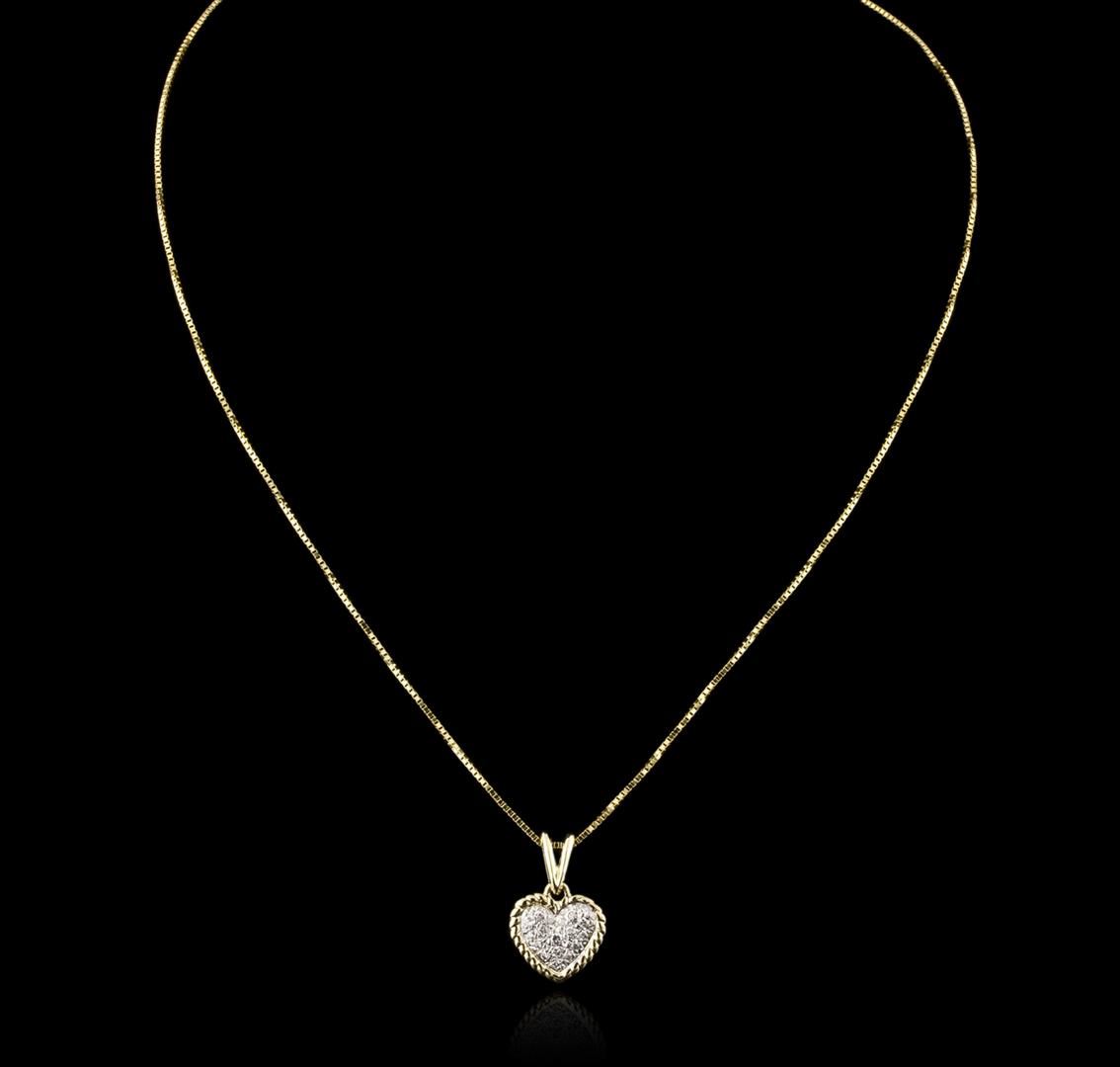One heart pendant with chain featuring: 14KT yellow gold weighing 4.20 grams containing pave set round diamonds with a total weight of 0.10ct.