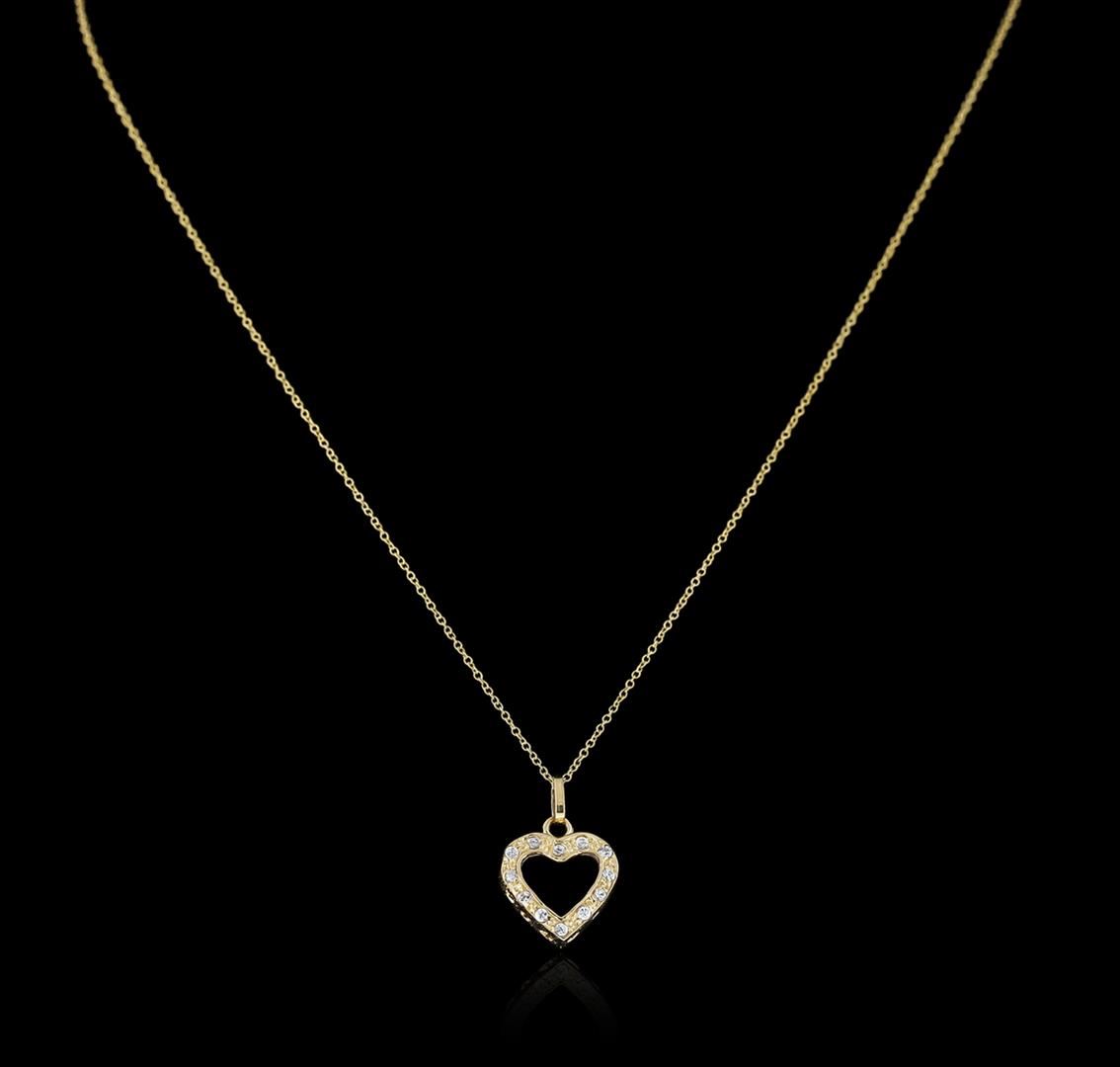 One heart pendant with chain featuring: 14KT yellow gold weighing 2.56 grams containing diamonds with a total weight of 0.10ct.