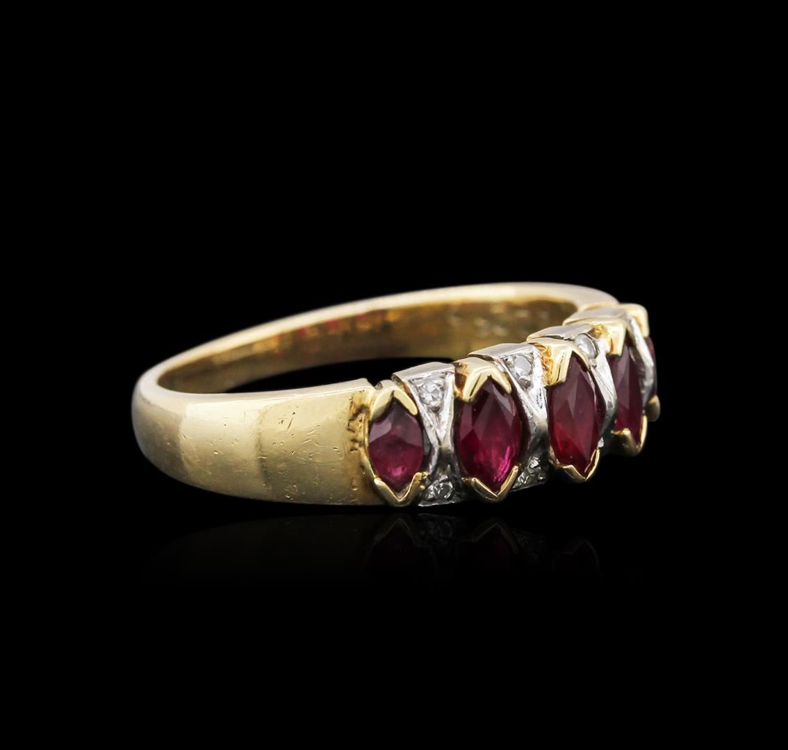 One ring featuring: 14KT yellow gold weighing 4.10 grams containing diamonds with a total weight of 0.10ct and rubies.