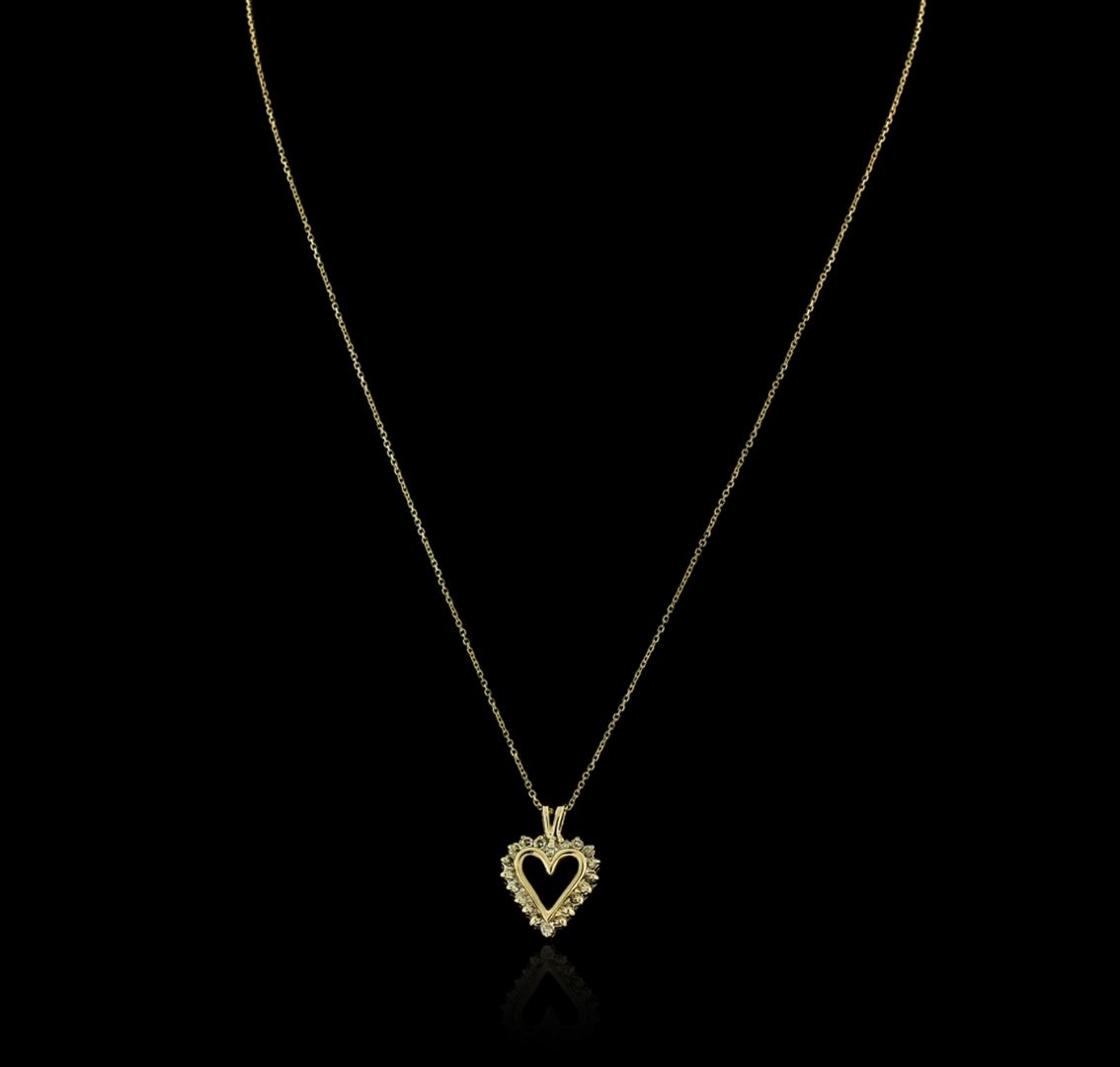 One pendant with chain featuring: 14KT yellow gold weighing 2.00 grams containing diamonds with a total weight of 0.15ct.