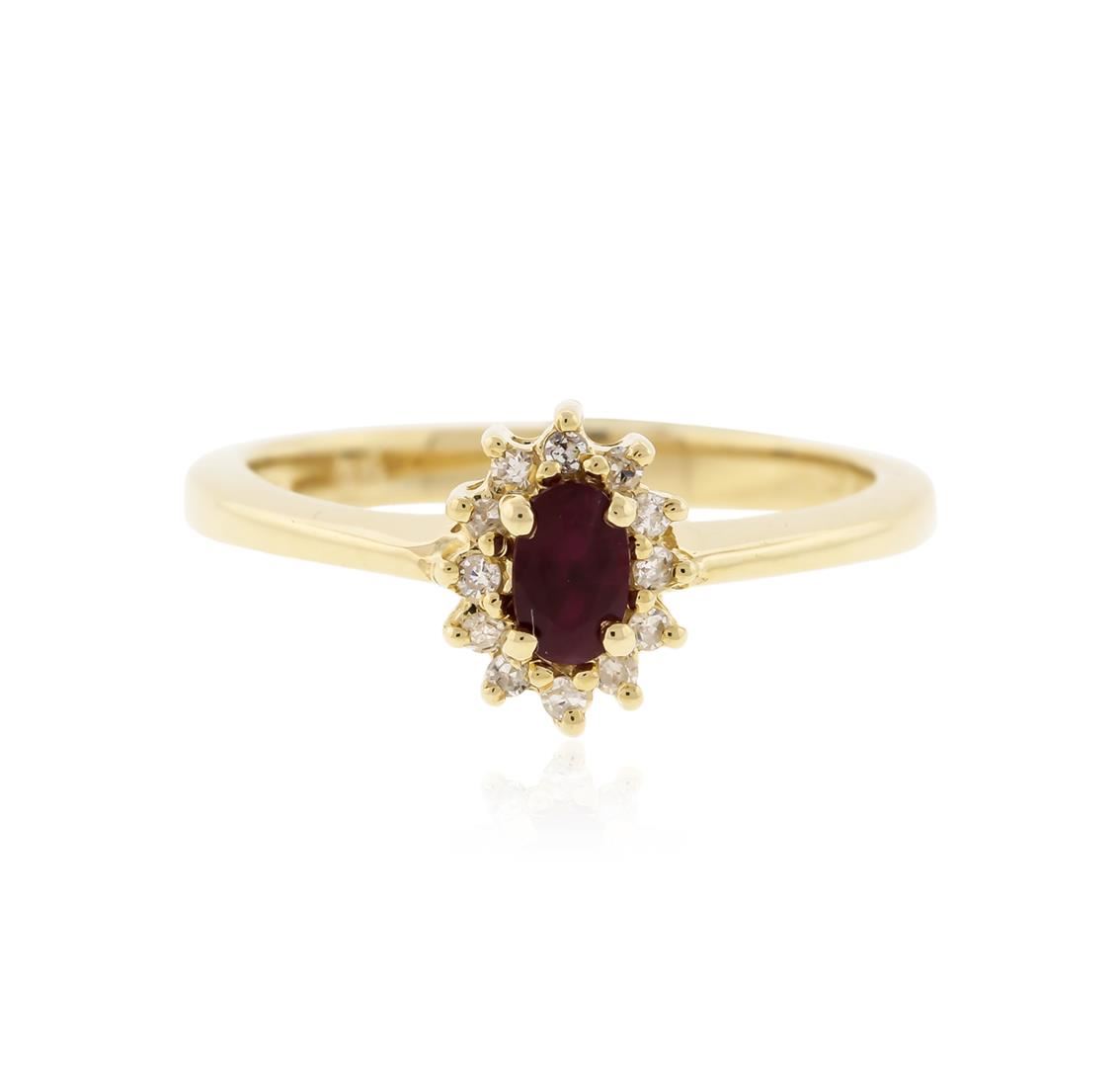 One ring featuring: 14KT yellow gold weighing 2.60 grams containing one ruby weighing 0.18ct and diamonds weighing a total of 0.15ct.
