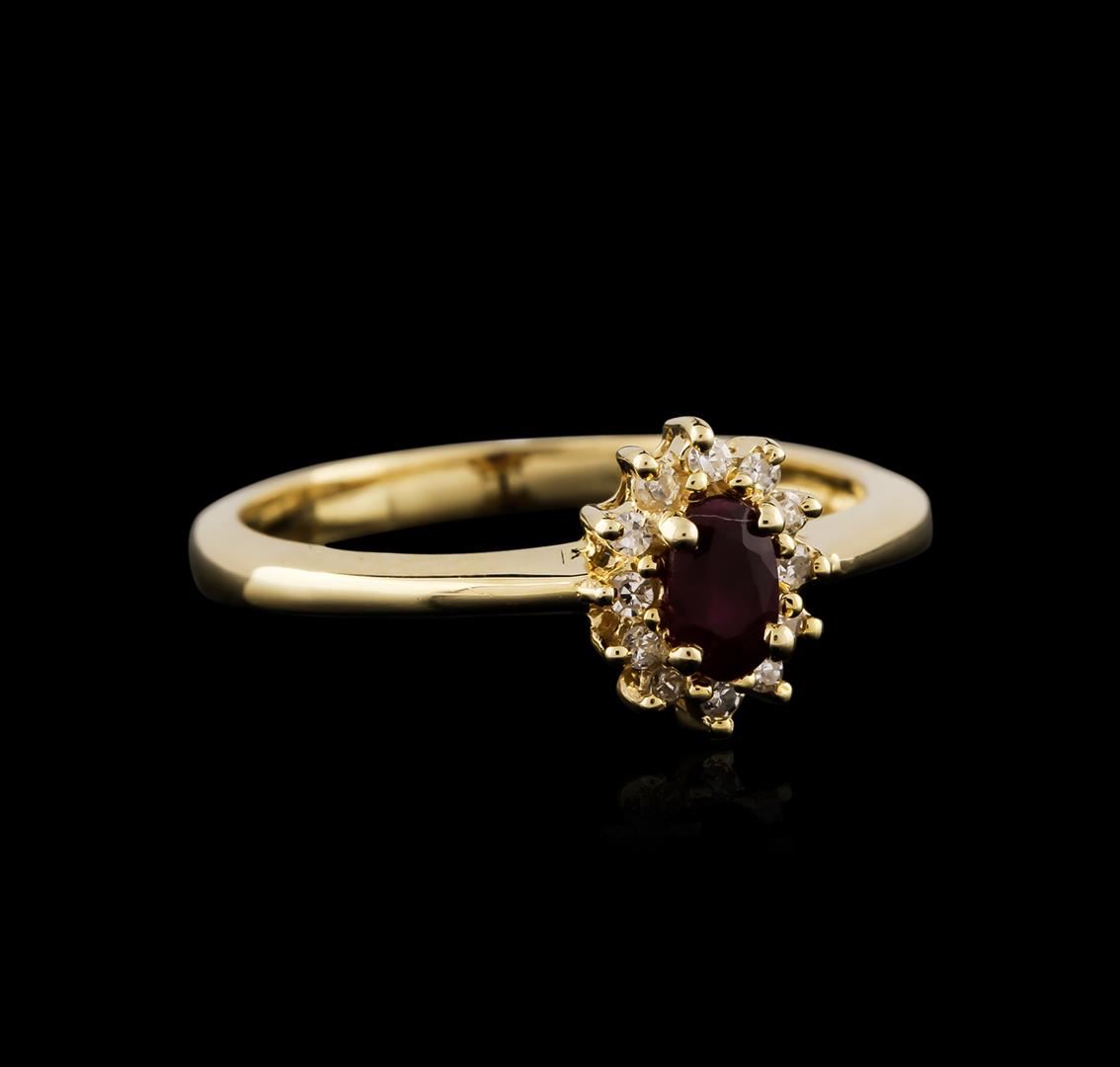 One ring featuring: 14KT yellow gold weighing 2.60 grams containing one ruby weighing 0.18ct and diamonds weighing a total of 0.15ct.