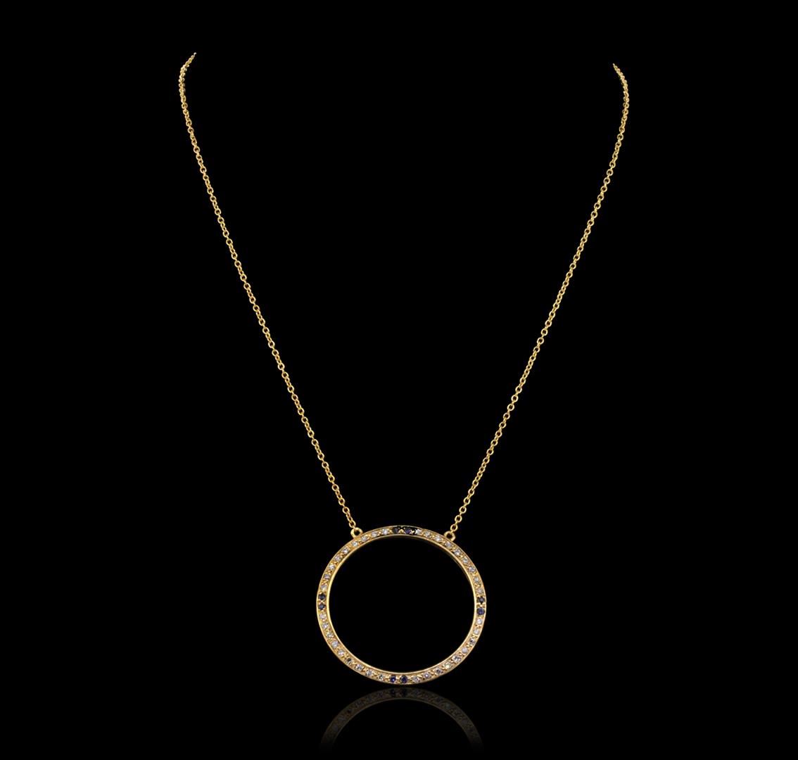 One pendant with chain featuring: 14KT yellow gold with a total weight of 7.50 grams, sapphire with a total weight of 0.20ctw, and diamonds with a total weight of 0.80ctw.