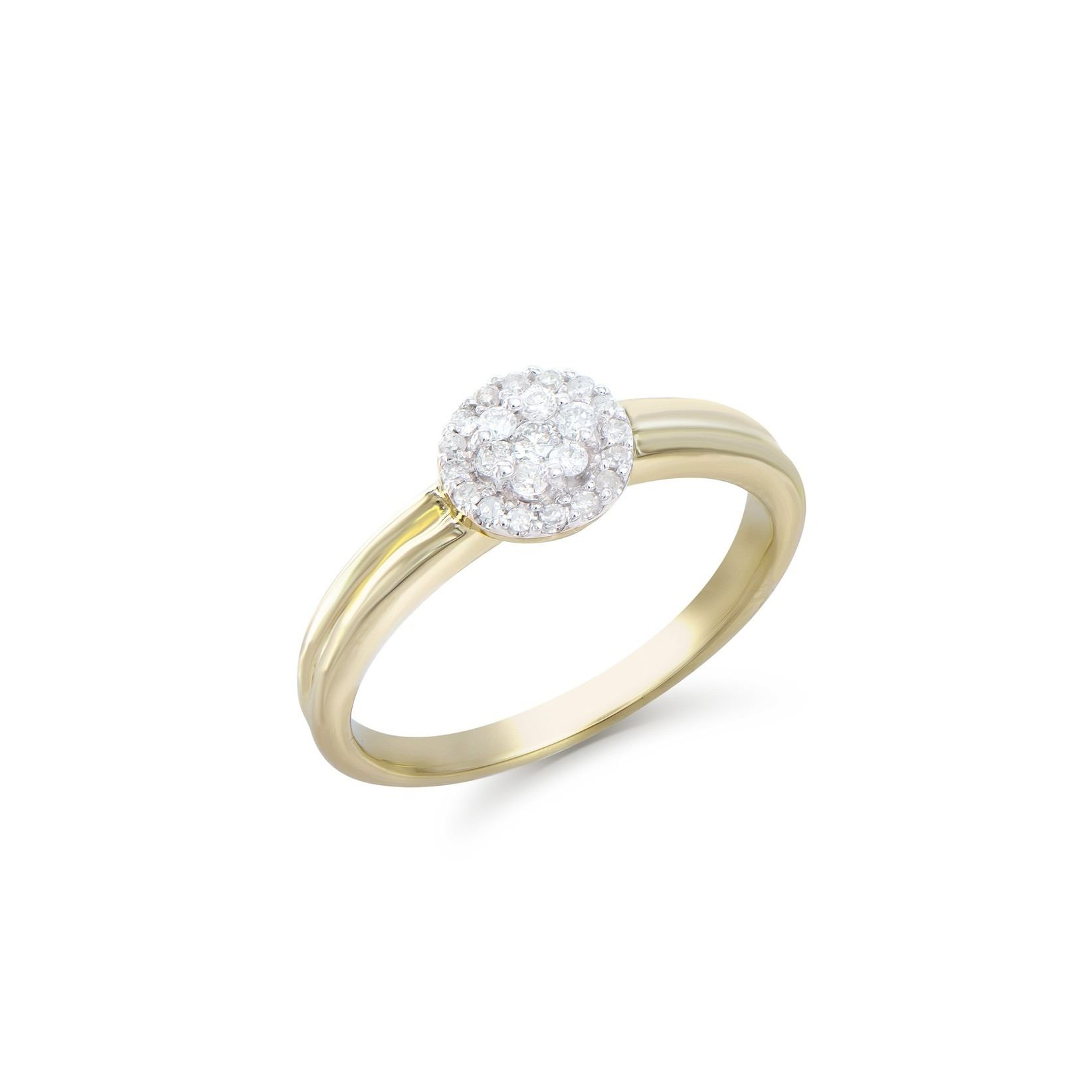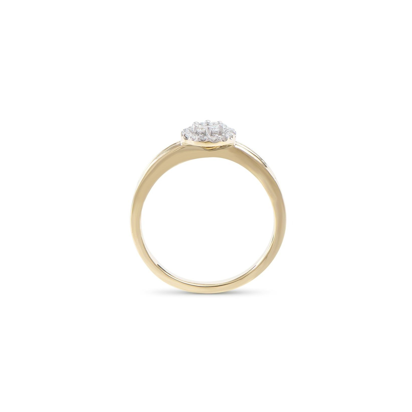 (1) round Diamond with a total weight of 0.03cts with a color of H-I and clarity of I1-I2. (22) round Diamonds with a total weight of 0.21cts with a color of H-I and clarity of I1-I2. Total weight of this ring is 2.8 grams. Ring size is 7.5.