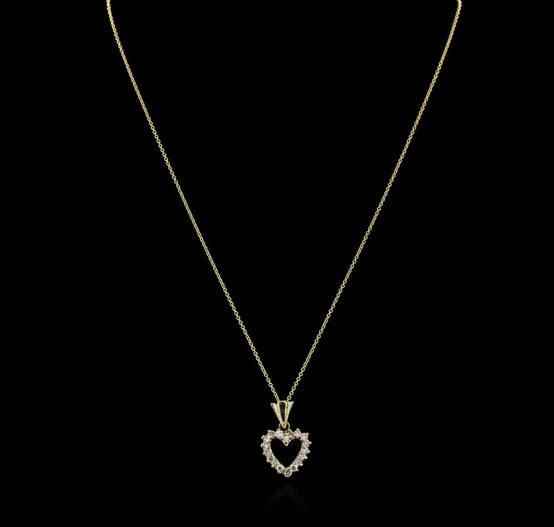 One heart pendant with chain featuring: 14KT yellow gold weighing 2.79 grams containing diamonds with a total weight of 0.25ct.