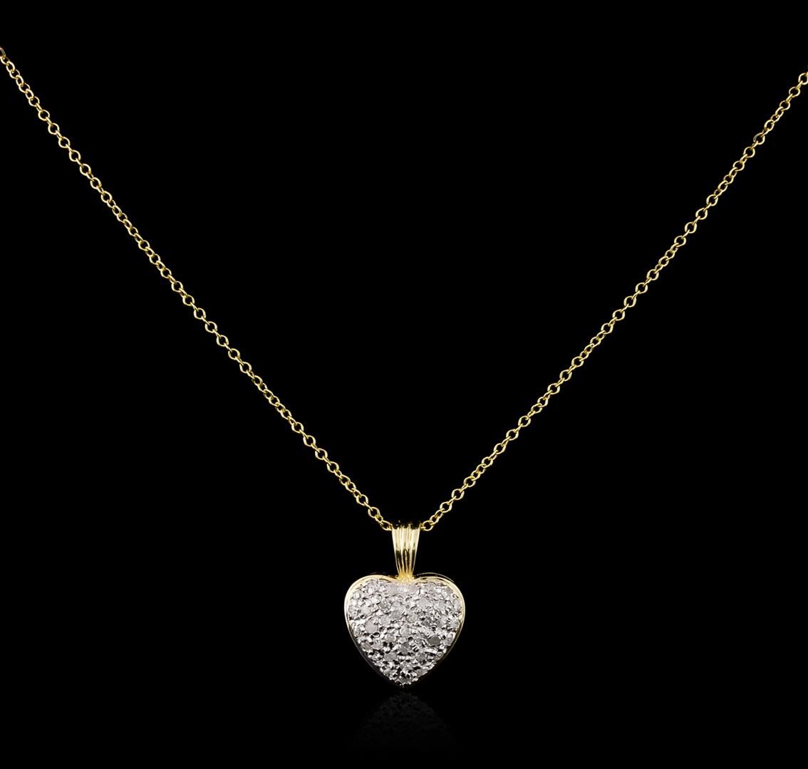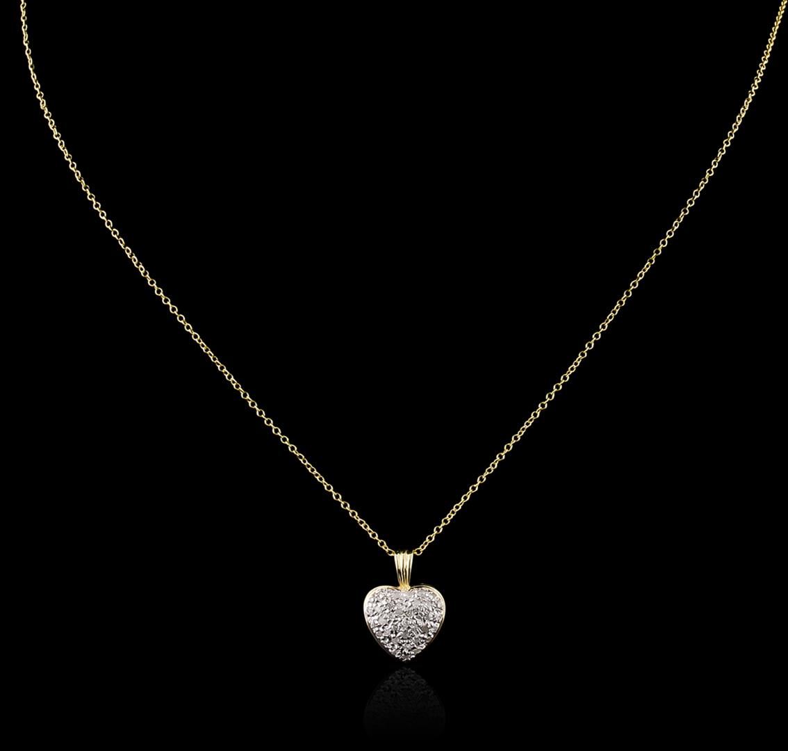 One heart pendant with chain featuring: 14KT yellow gold weighing 2.50 grams containing diamonds with a total weight of 0.25ct.