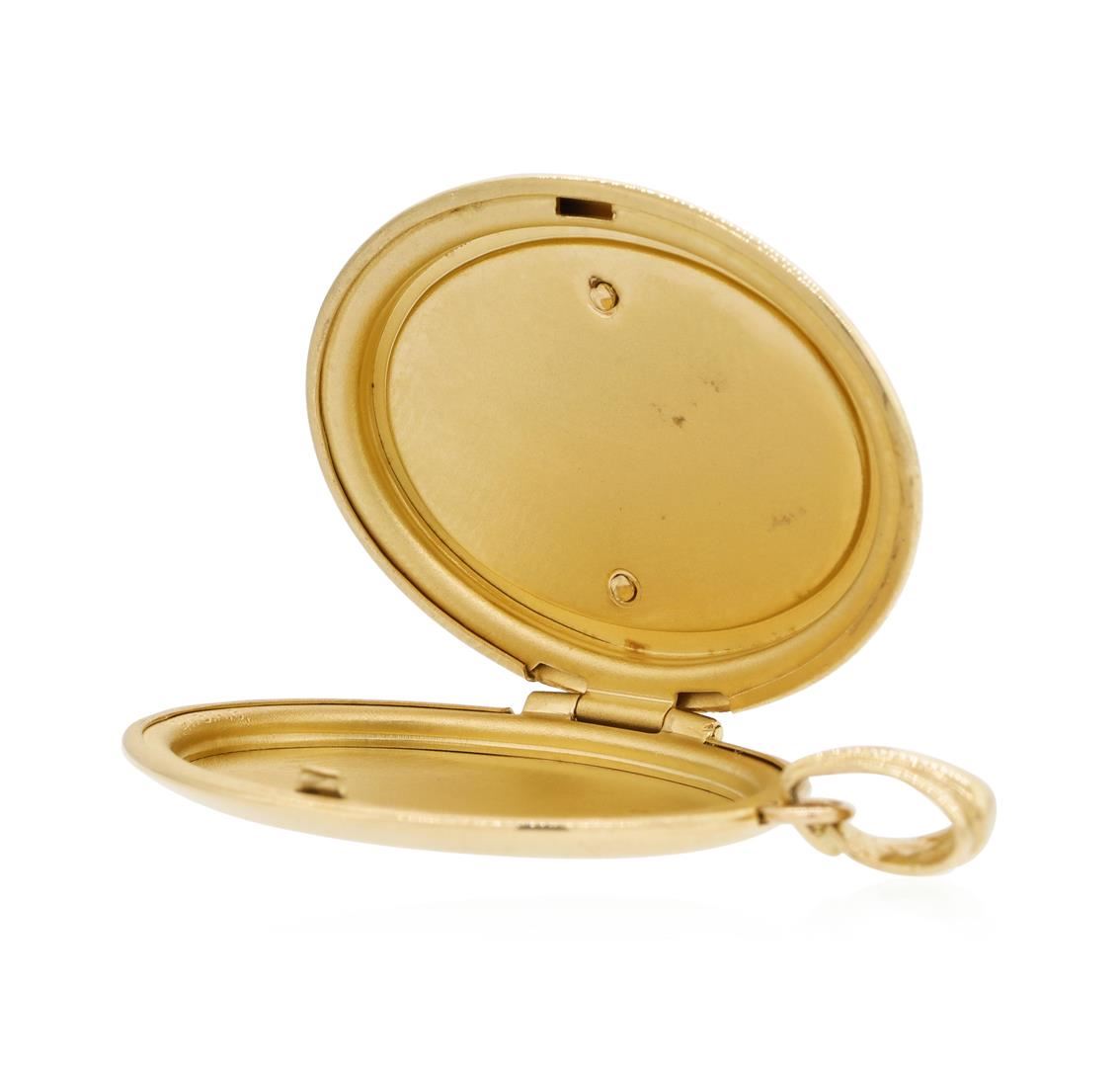One locket featuring: 14KT yellow gold weighing 9.1 grams containing diamonds weighing 0.25ctw. The locket measures approximately 40 millimeters in length.