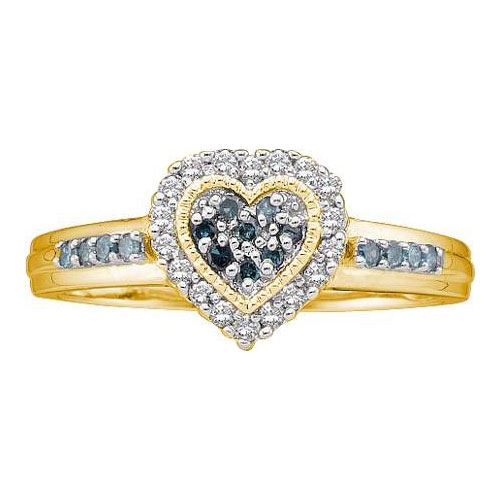14KT Yellow Gold 0.25CTW ROUND WHITE & BLUE DIAMOND HEA **|**|** JSC Source: 29901 ; Metal: gold ; Metal Purity: 14KT ; Ring Size: 7 ; Sizeable: TRUE ; Main Stone: I1-I2 ; Total Carat: 0.25 ; Main Stone Color: H-I Color ; All diamonds are natural but colored diamonds are enhanced.Shipping cost: Below $200 = $19.99, $201-$500 = $29.99, $501-$1000 = $39.99, $1001-$2000 = $49.99