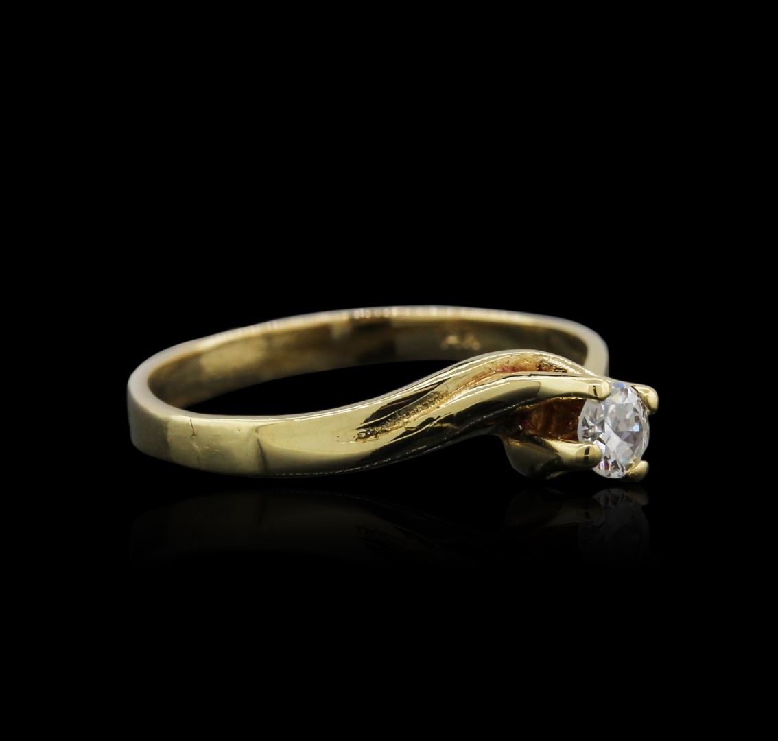 One solitaire ring featuring: 14KT yellow gold weighing 2.50 grams containing one prong set round diamond with a total weight of 0.25ct.