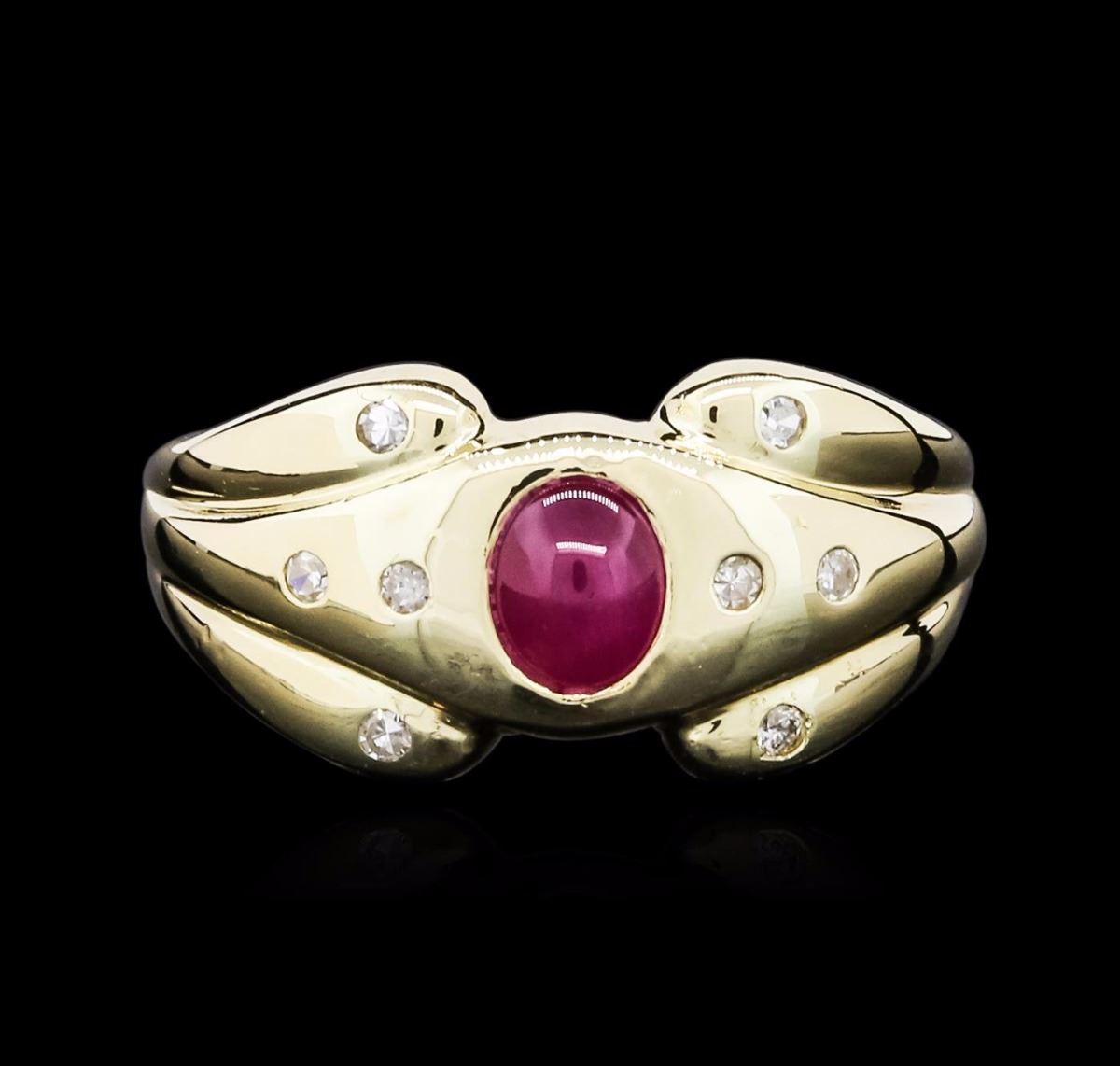 One ring featuring: 14KT yellow gold weighing 4.30 grams containing one ruby center stone with a total weight of 0.25ct and round cut diamonds with a total weight of 0.10cts.