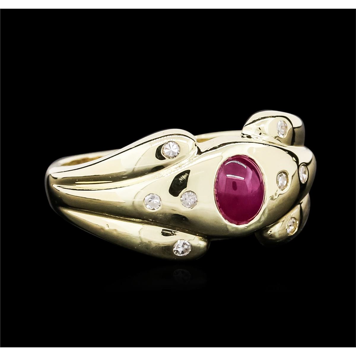 One ring featuring: 14KT yellow gold weighing 4.30 grams containing one ruby center stone with a total weight of 0.25ct and round cut diamonds with a total weight of 0.10cts.