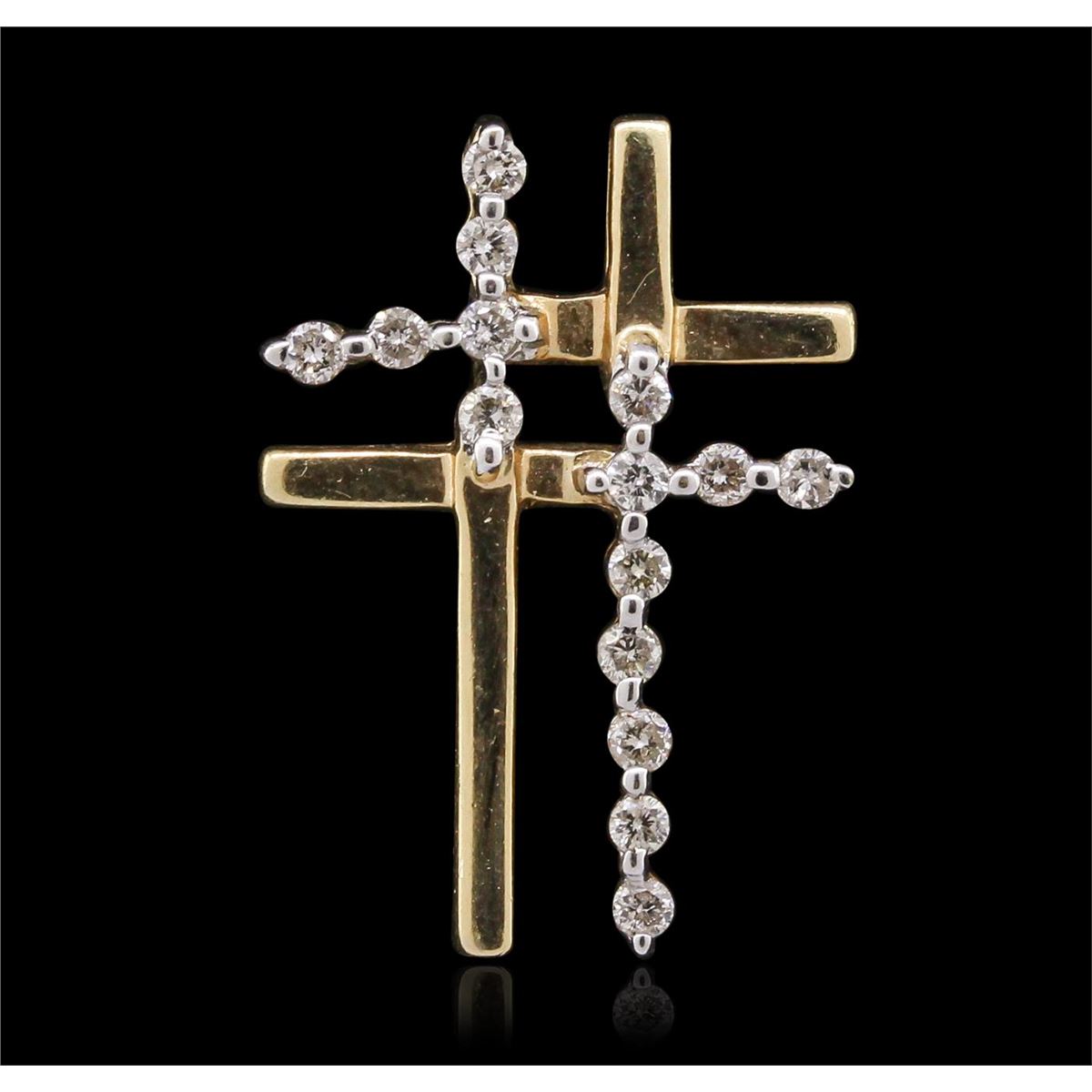 One cross pendant featuring: 14KT yellow gold weighing 2.70 grams containing round diamonds with a total weight of 0.25ct.