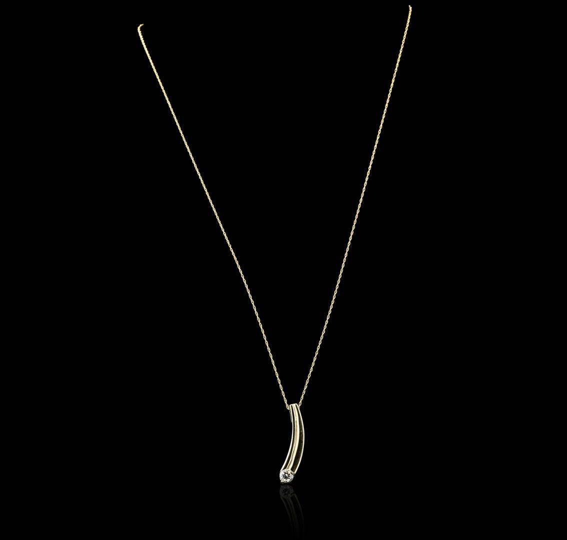 One fashion pendant with chain featuring: 14KT yellow gold weighing 4.50 grams containing one round diamond with a total weight of 0.30ct.