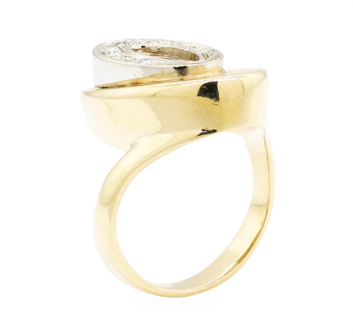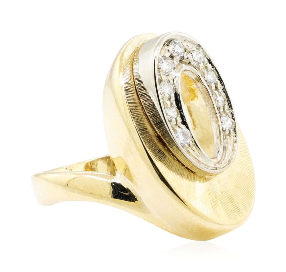 One ring featuring: 14KT yellow gold weighing 6.4 grams containing diamonds weighing 0.30ctw. The ring is a size 5.