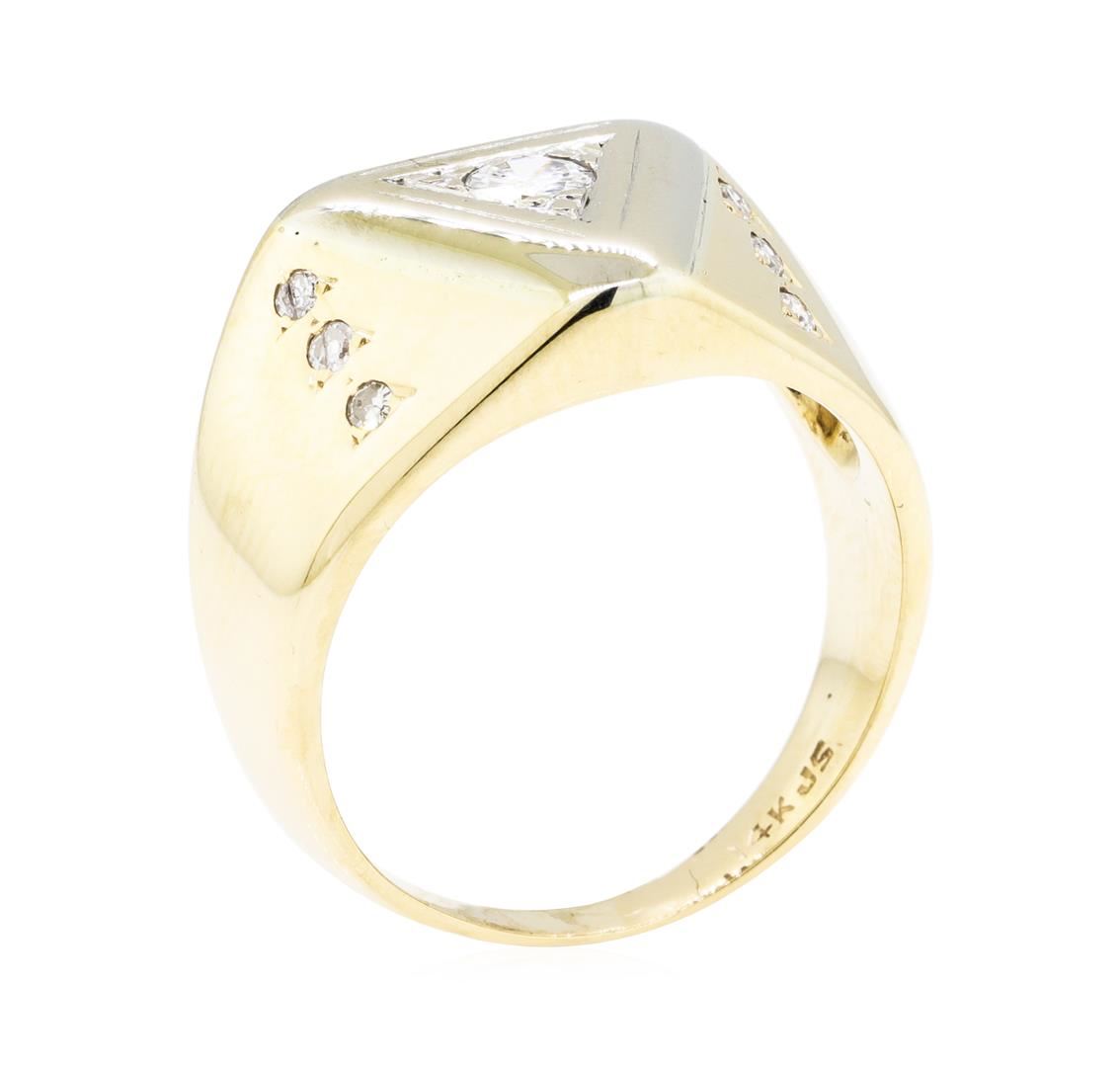 One ring featuring: 14KT yellow gold weighing 7.1 grams containing diamonds weighing 0.30ctw. The ring is a size 8.