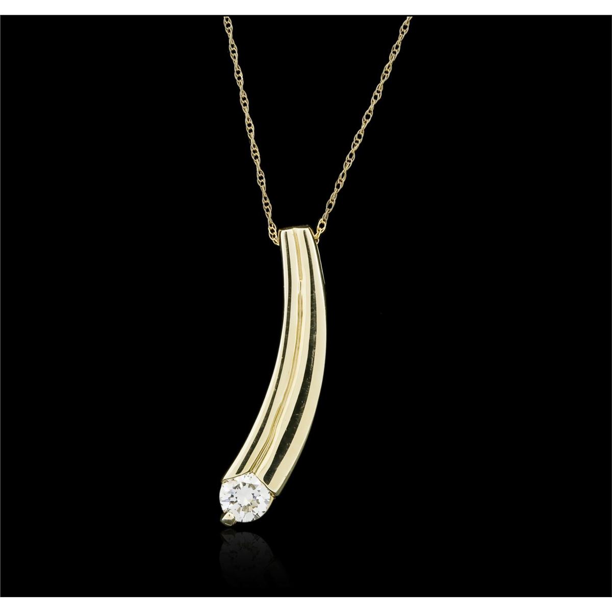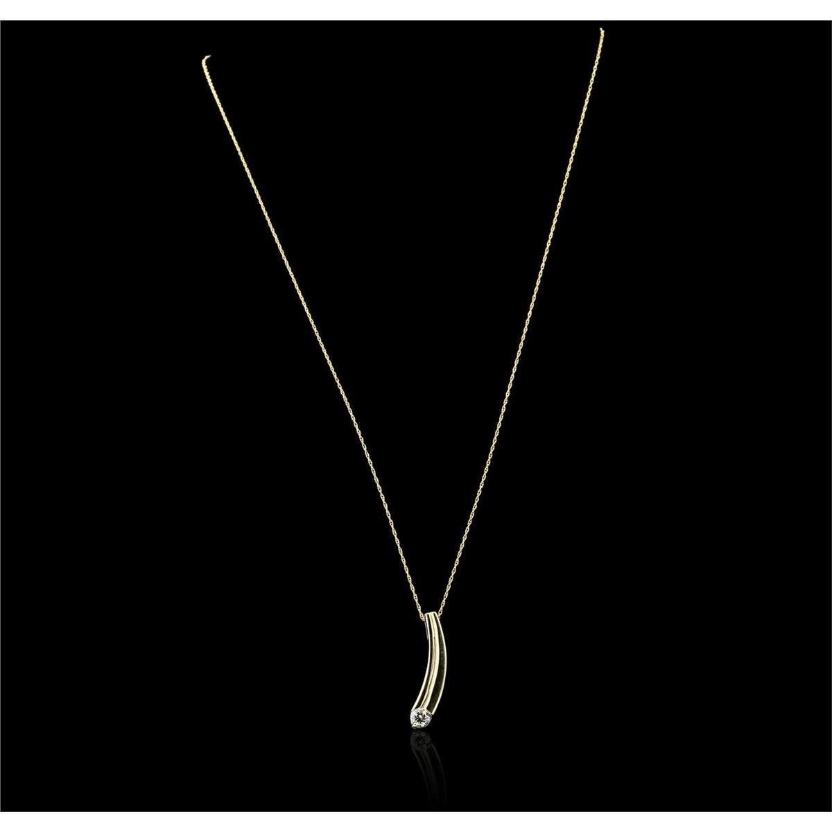One fashion pendant with chain featuring: 14KT yellow gold weighing 4.50 grams containing one round diamond with a total weight of 0.30ct.