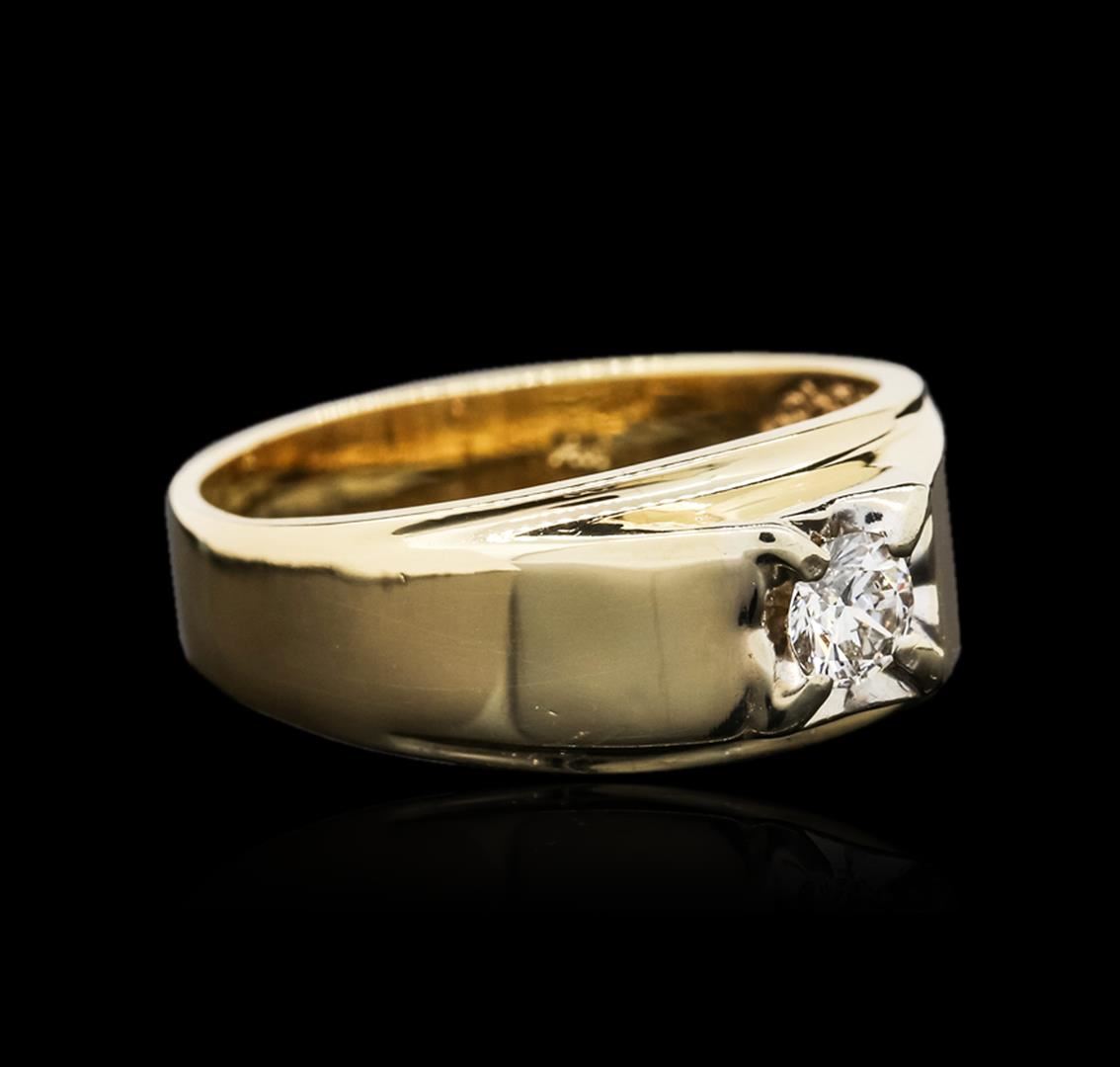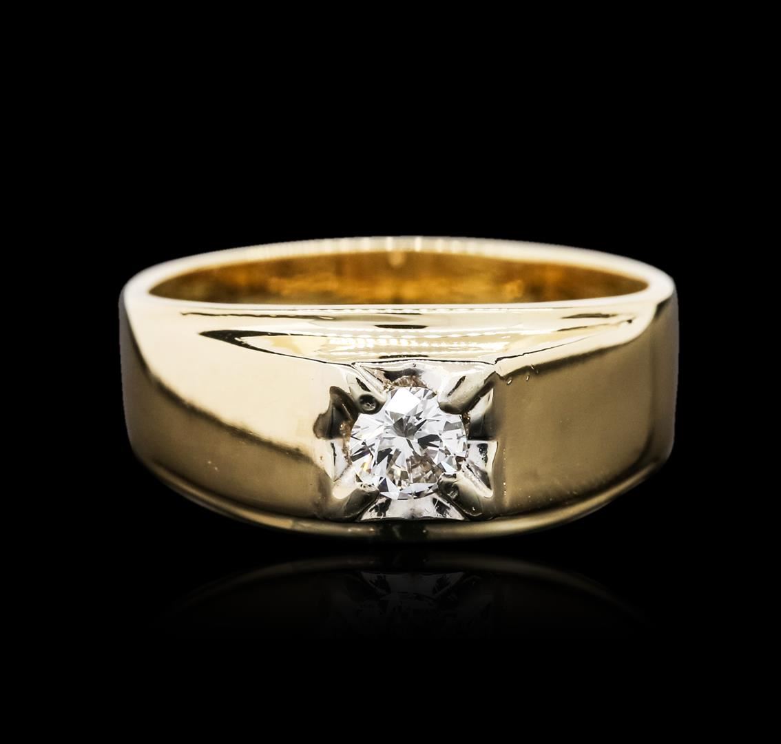 One solitaire ring featuring: 14KT yellow gold weighing 6.20 grams containing one round cut diamond center stone with a total weight of 0.30ct.