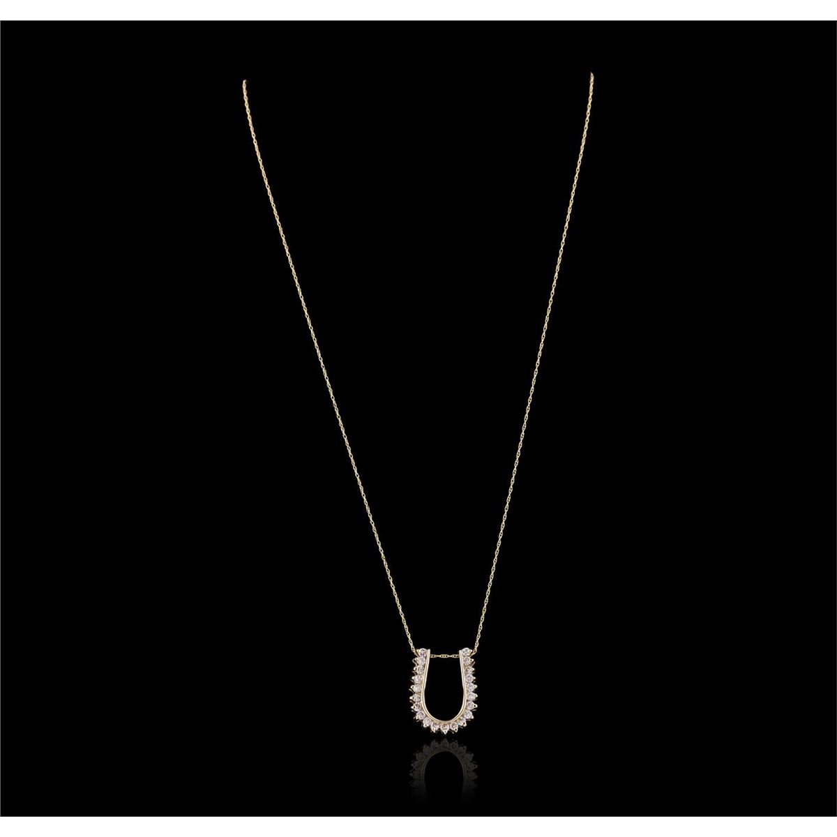 One pendant with chain featuring: 14KT yellow gold with a total weight of 3.53 grams, and diamond with a total weight of 0.30ctw.