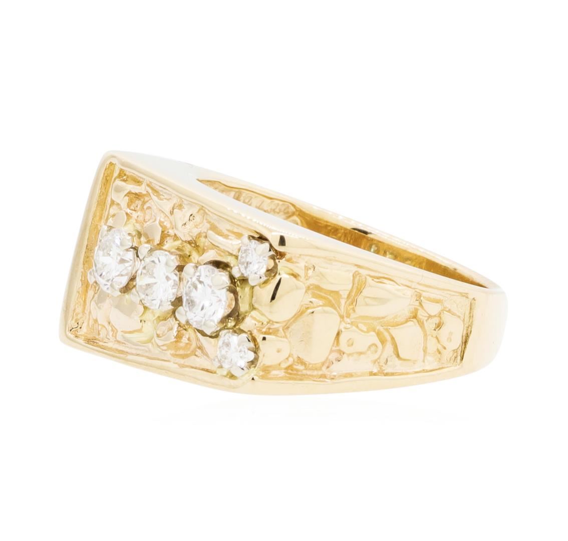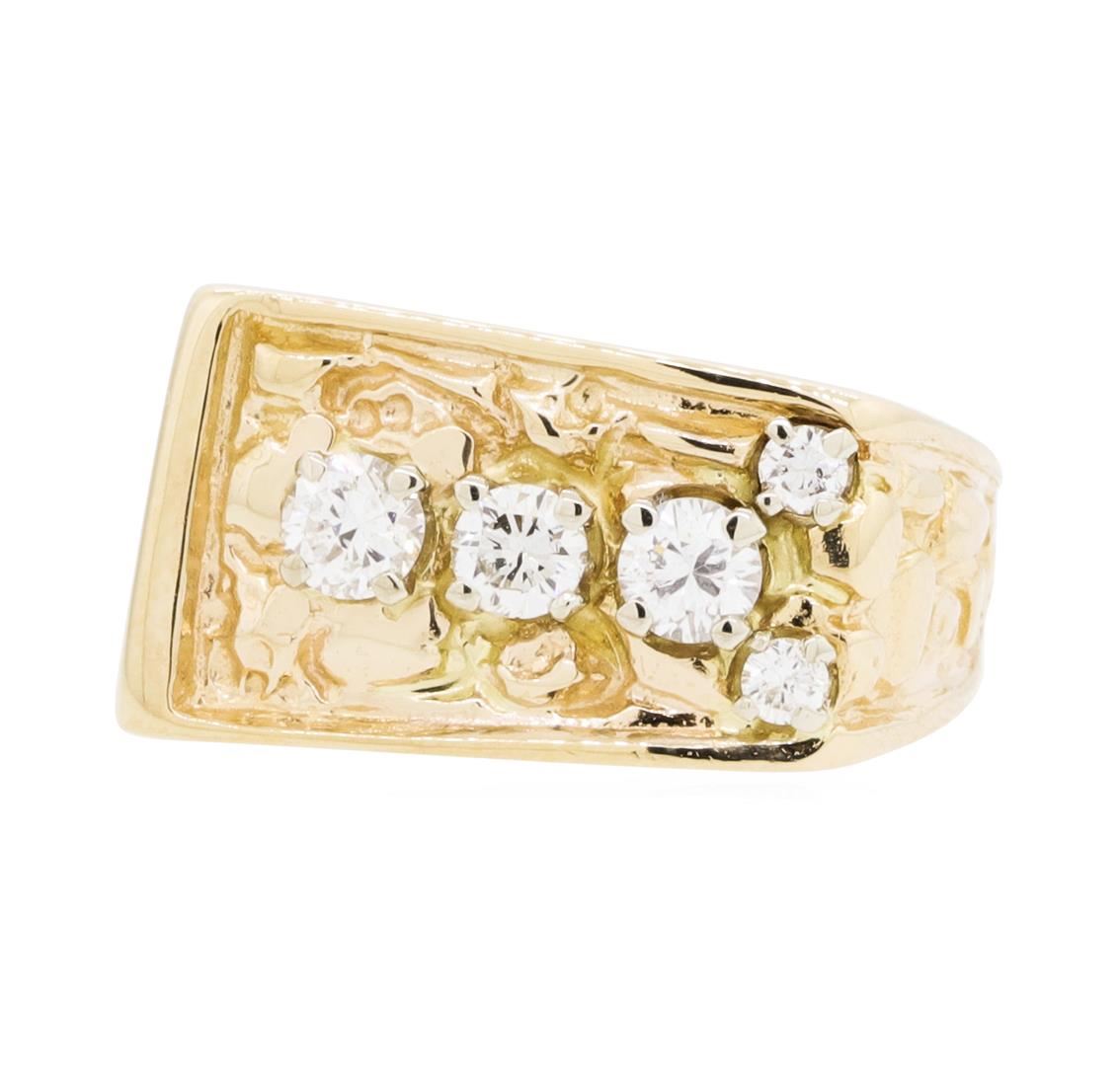 One lady's ring featuring: 14KT yellow gold weighing 6.3 grams containing diamonds weighing 0.30ctw. The ring is a size 5.