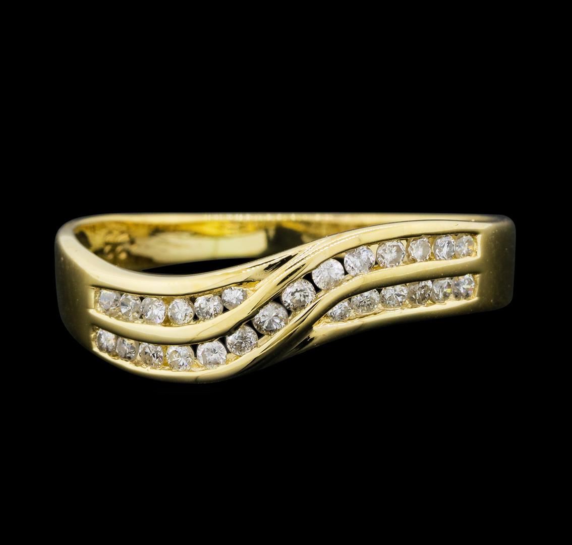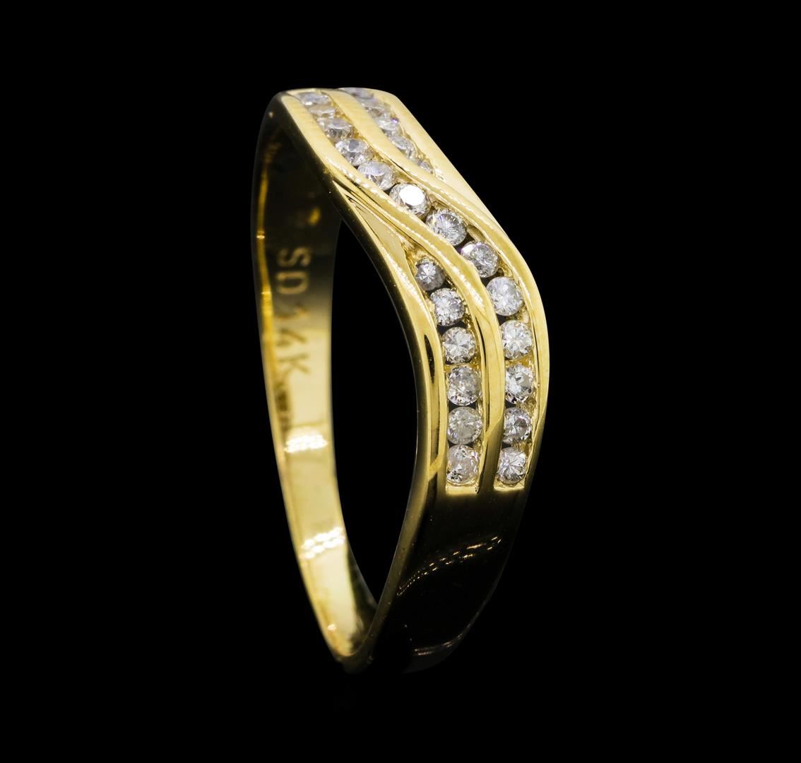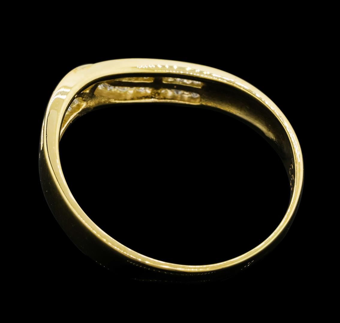 One ring featuring: 14KT yellow gold weighing 2.8 grams containing diamonds weighing 0.35ctw. The ring is a size 9.75.