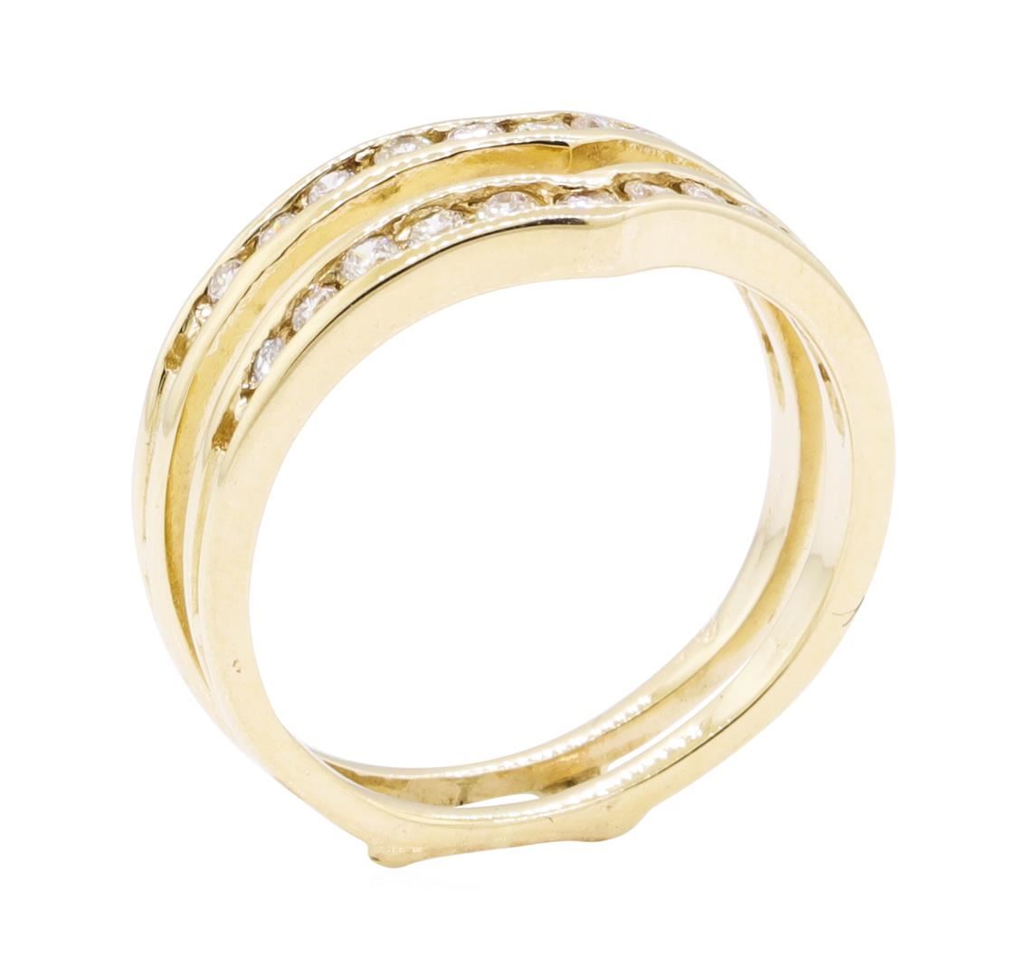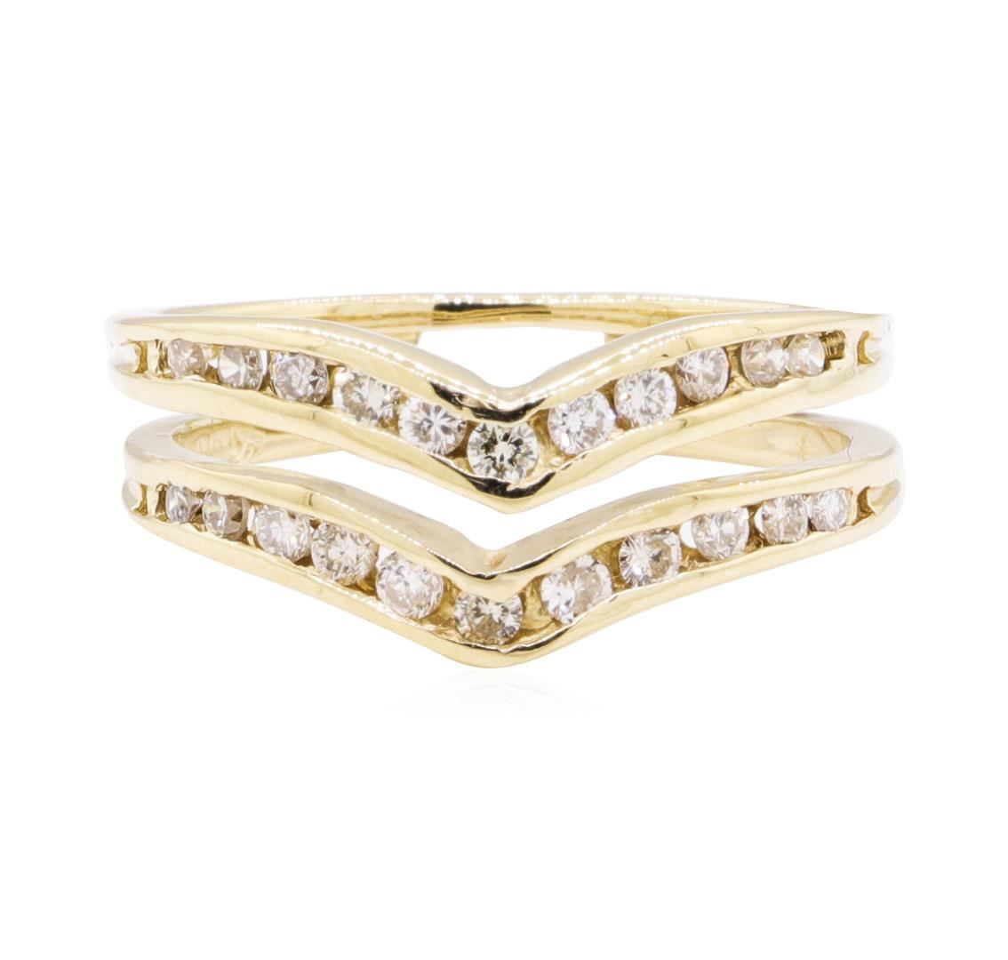 One double chevron lady's ring featuring: 14KT yellow gold weighing 2.9 grams containing diamonds weighing 0.40ctw. The ring is a size 5.5