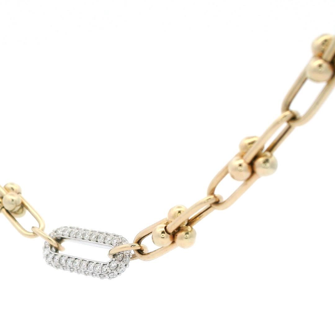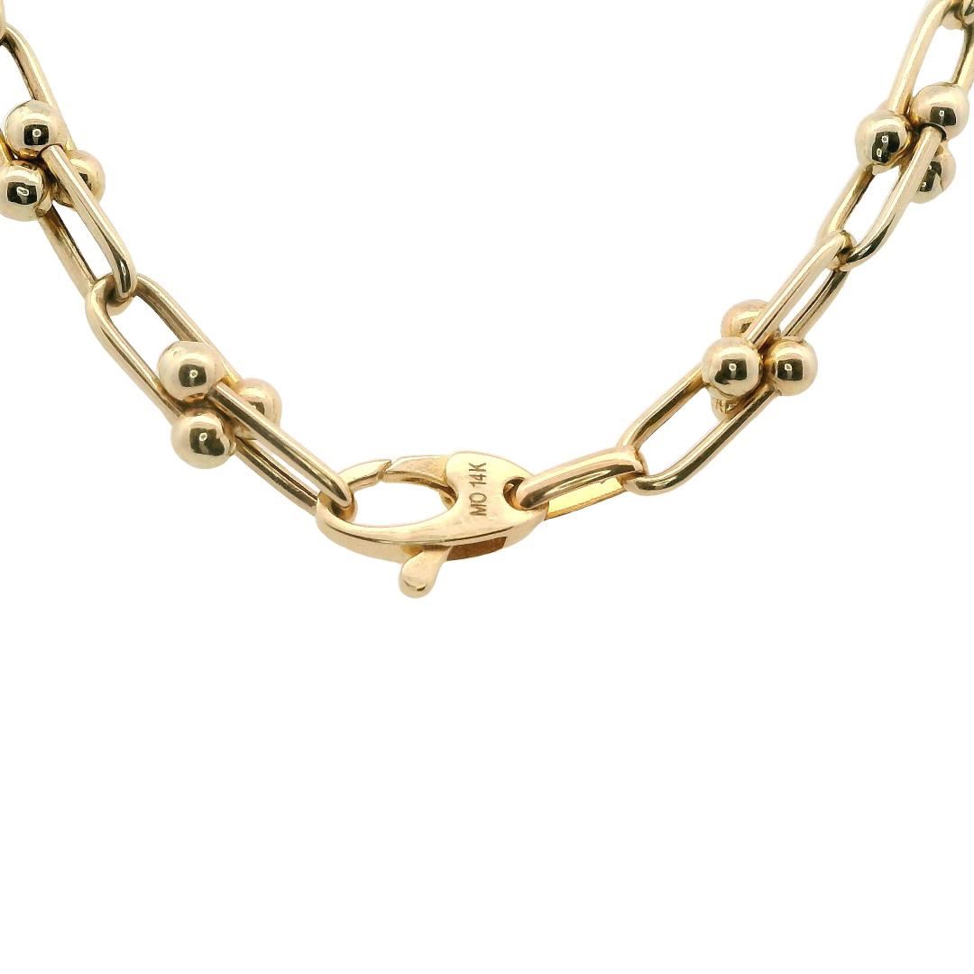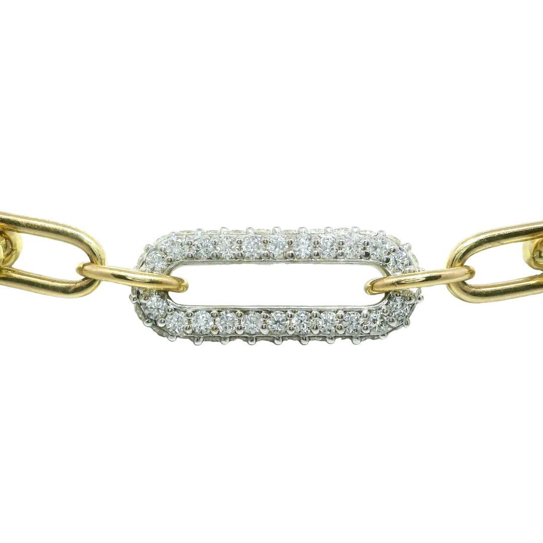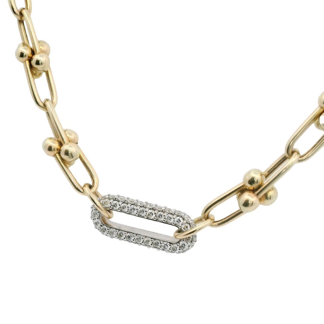 One electronically tested 14KT yellow gold lady's combination cast & assembled fashion link style necklace with a lobster claw clasp with a oval diamond center with a bright polish finish. Condition is new, good workmanship. The featured lady's necklace m GAS Appraised.