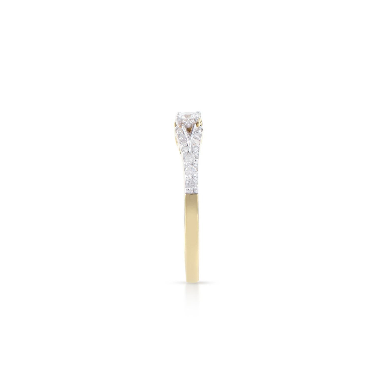 (1) round Diamond with a total weight of 0.22cts with a color of H-I and clarity of I1-I2. (22) round Diamonds with a total weight of 0.18cts with a color of H-I and clarity of I1-I2. Total weight of this ring is 1.9 grams. Ring size is 7.5.