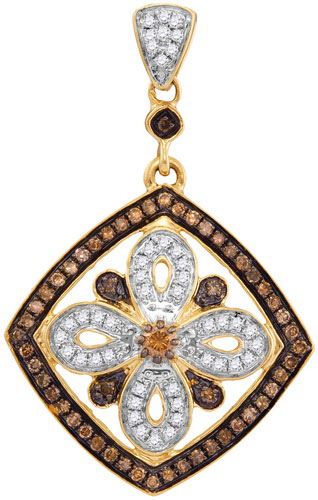 14KT Yellow Gold 0.41CTW COGNAC DIAMOND MICRO-PAVE PEND **|**|** Source: 106848 ; Metal: gold ; Metal Purity: 14KT ; Main Stone: I1-I2 ; Total Carat: 0.41 ; Main Stone Color: H-I Color ; All diamonds are natural but colored diamonds are enhanced.
