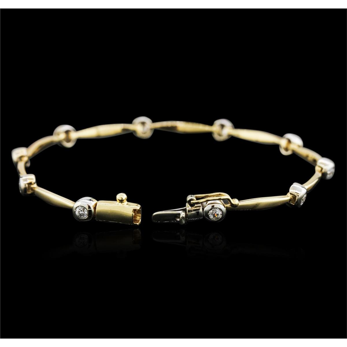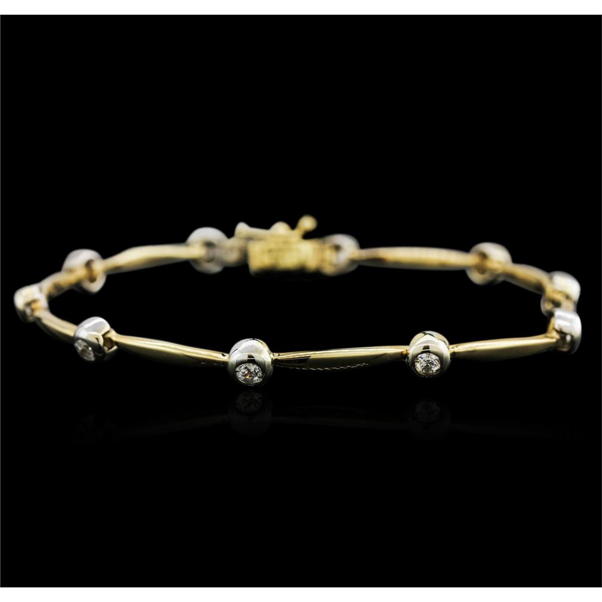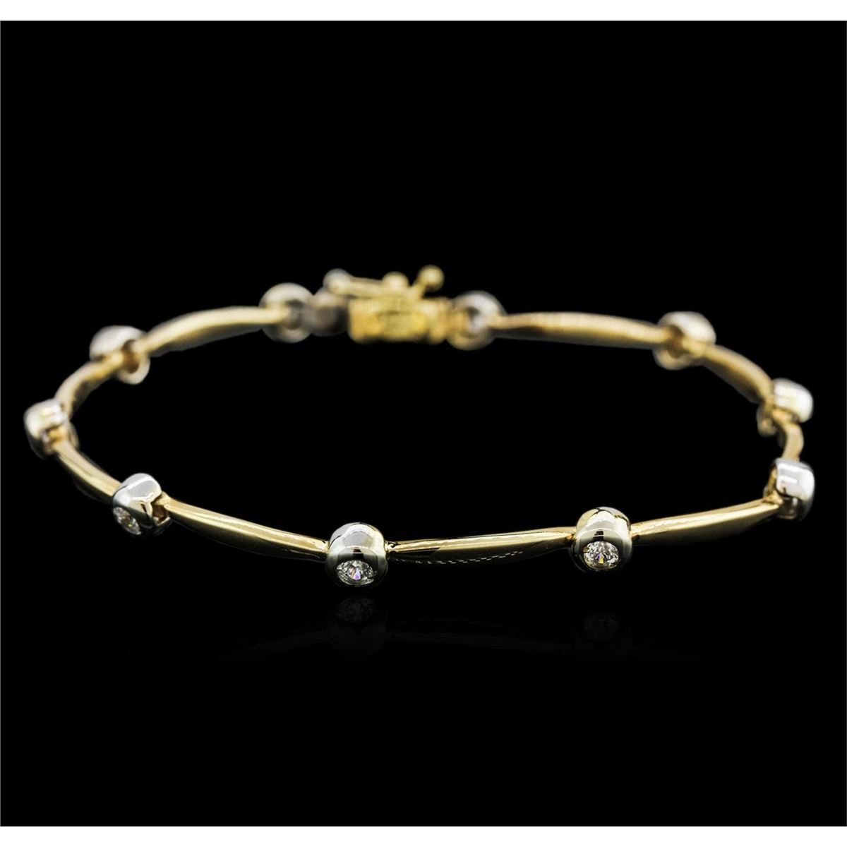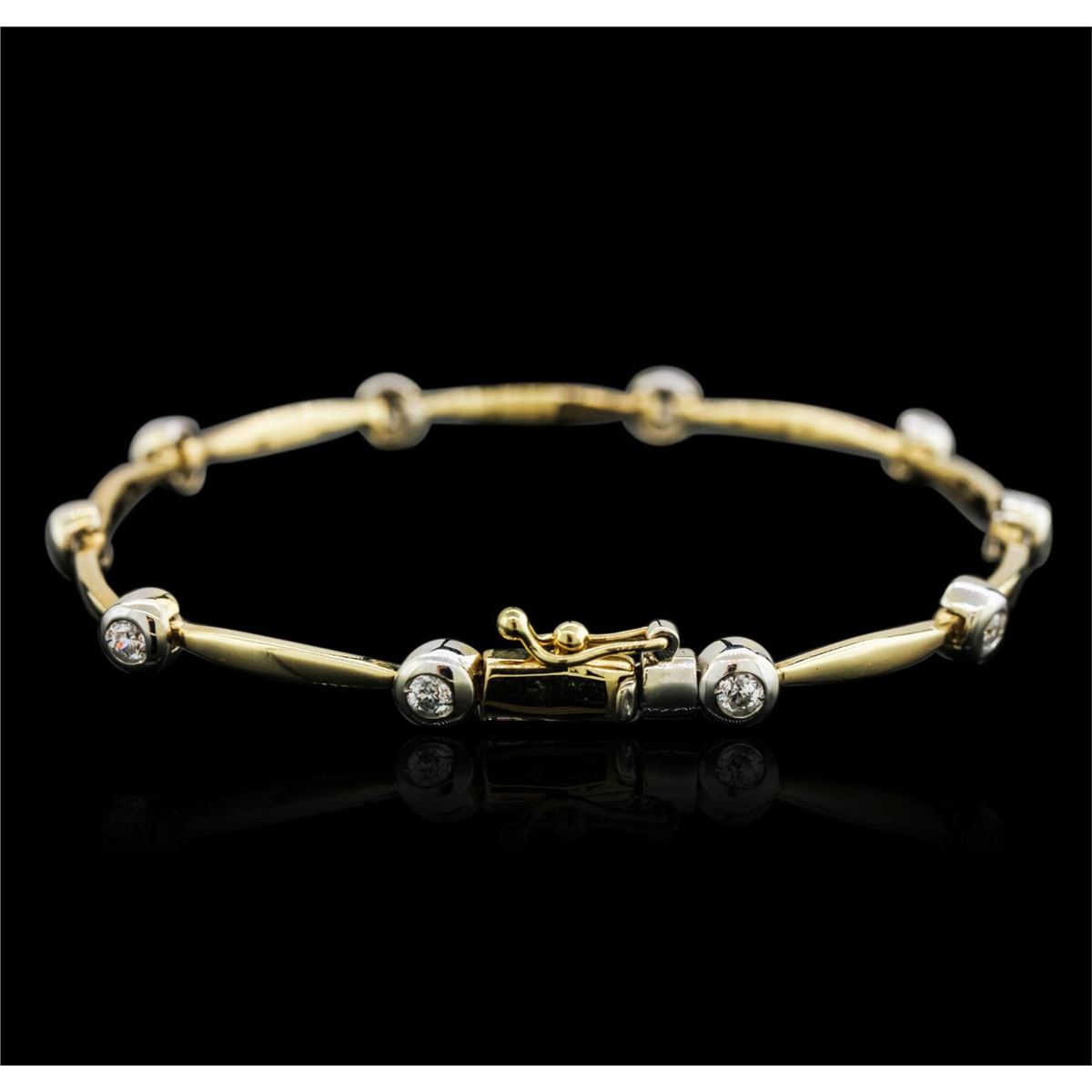 One bracelet featuring: 14KT yellow gold weighing 9.90 grams containing bezel set round diamonds with a total weight of 0.45ct.