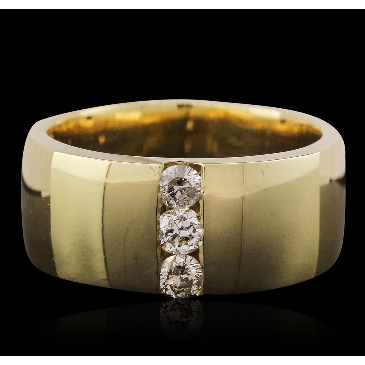 One ring featuring: 14KT yellow gold weighing 21.60 grams containing three round cut diamonds with a total weight of 0.45cts.