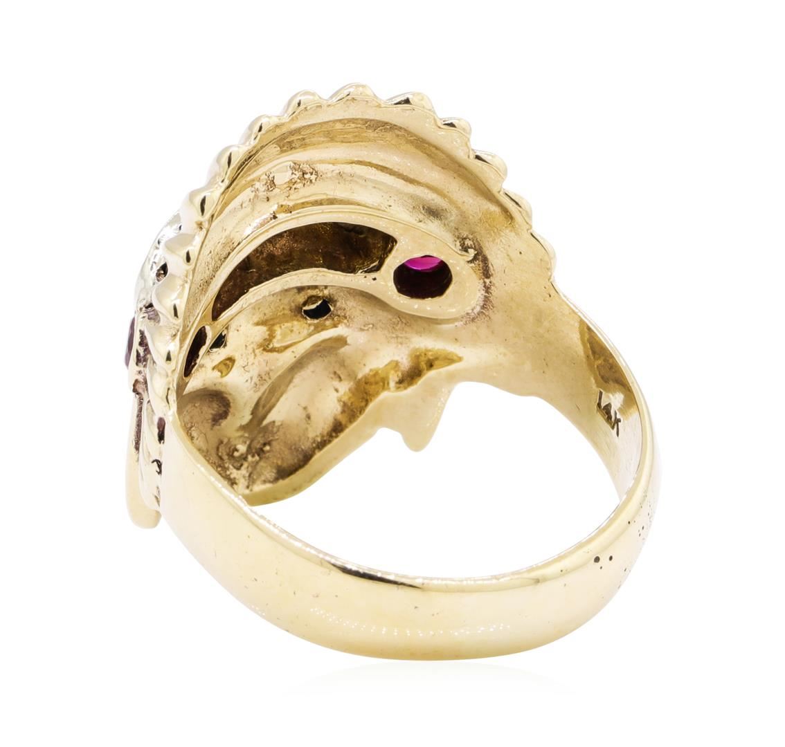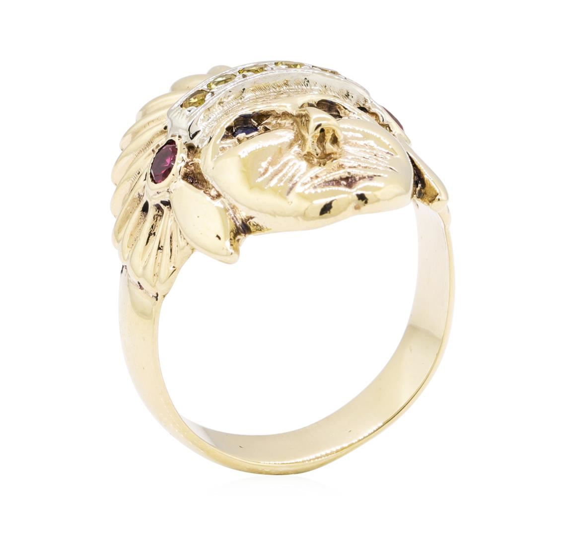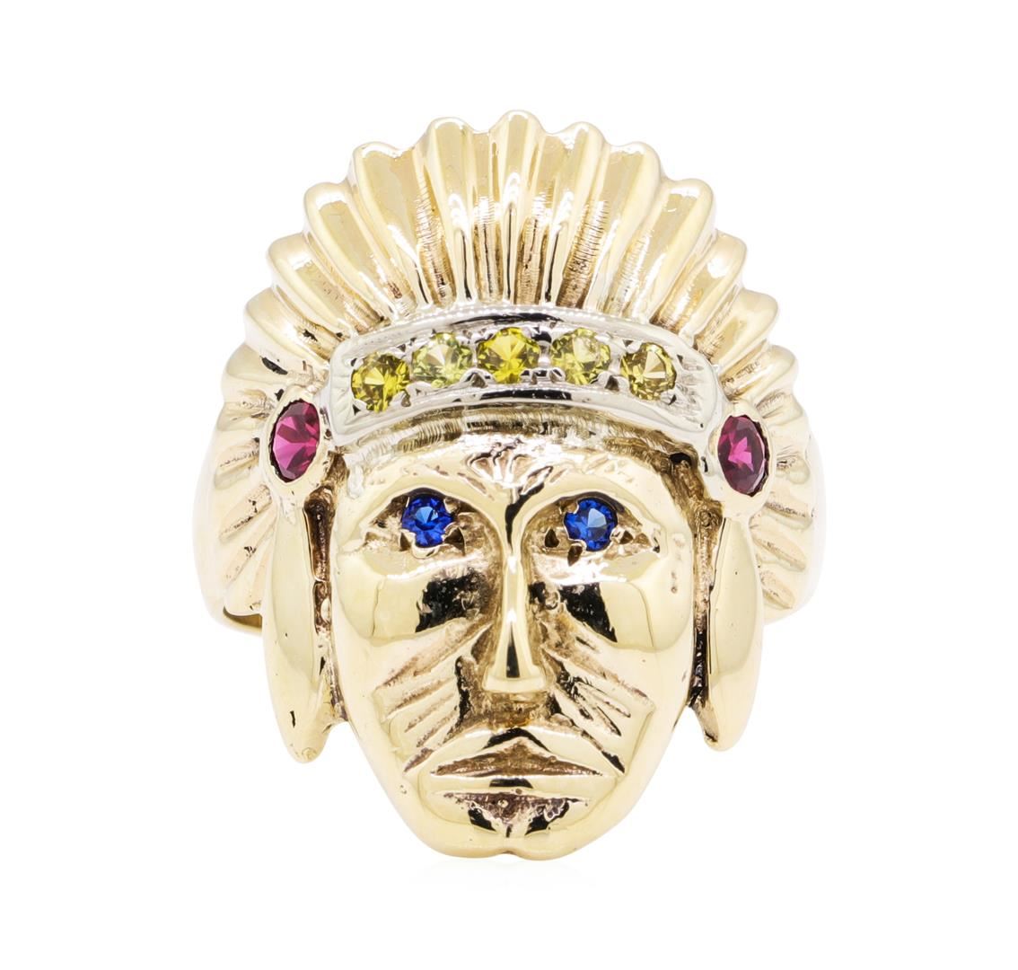 14KT Yellow Gold 0.50 ctw Multi-Color Sapphire Native American Chief Motif Ring