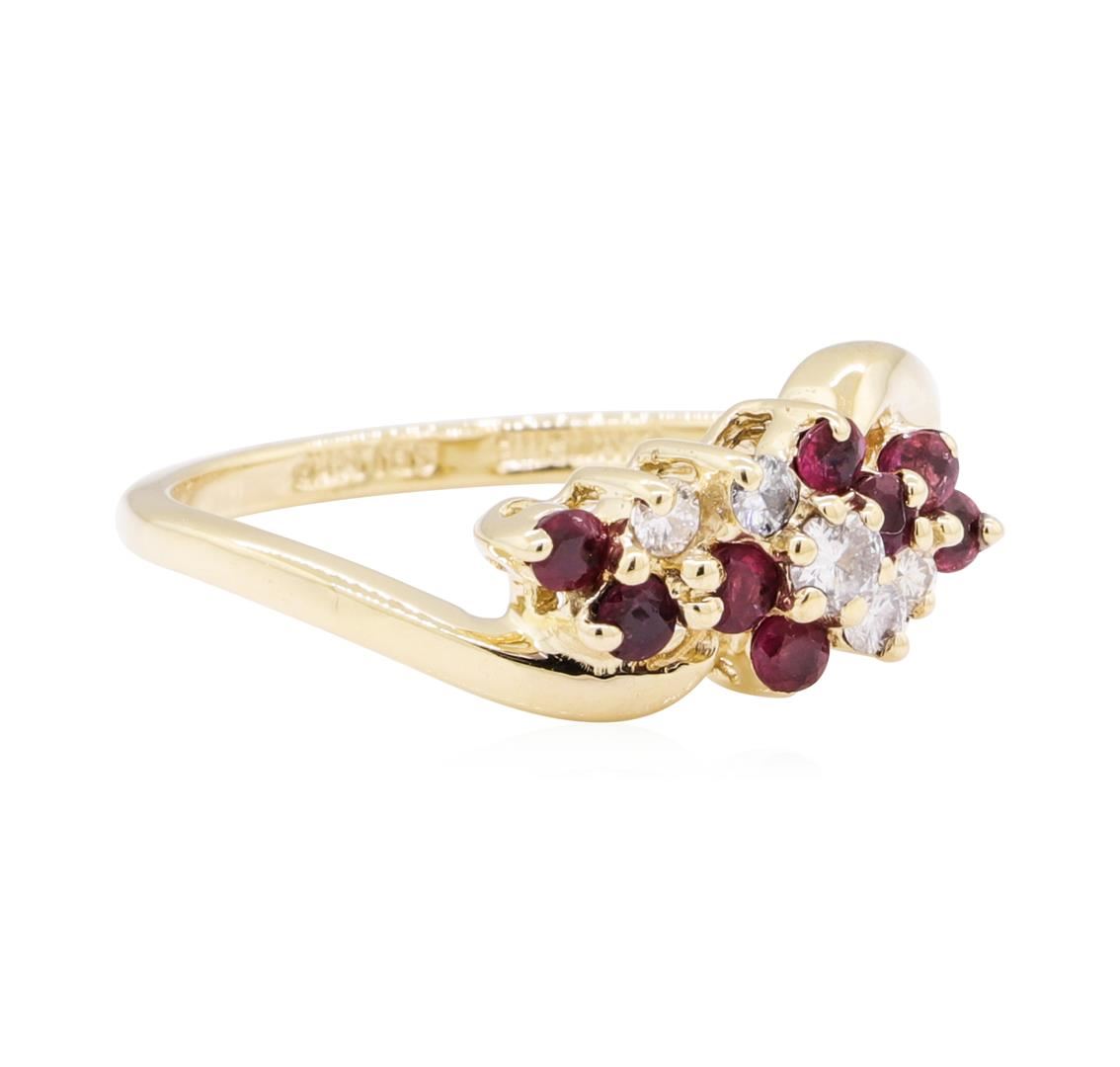 One lady's ring featuring: 14KT yellow gold weighing 3.0 grams containing rubies weighing 0.30ctw and diamonds weighing 0.20ctw. The ring is a size 6.5.