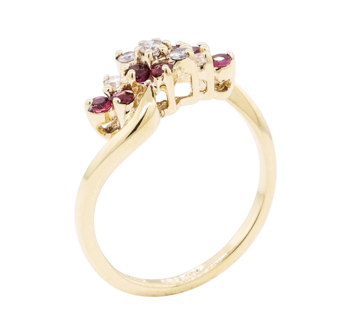 One lady's ring featuring: 14KT yellow gold weighing 3.0 grams containing rubies weighing 0.30ctw and diamonds weighing 0.20ctw. The ring is a size 6.5.