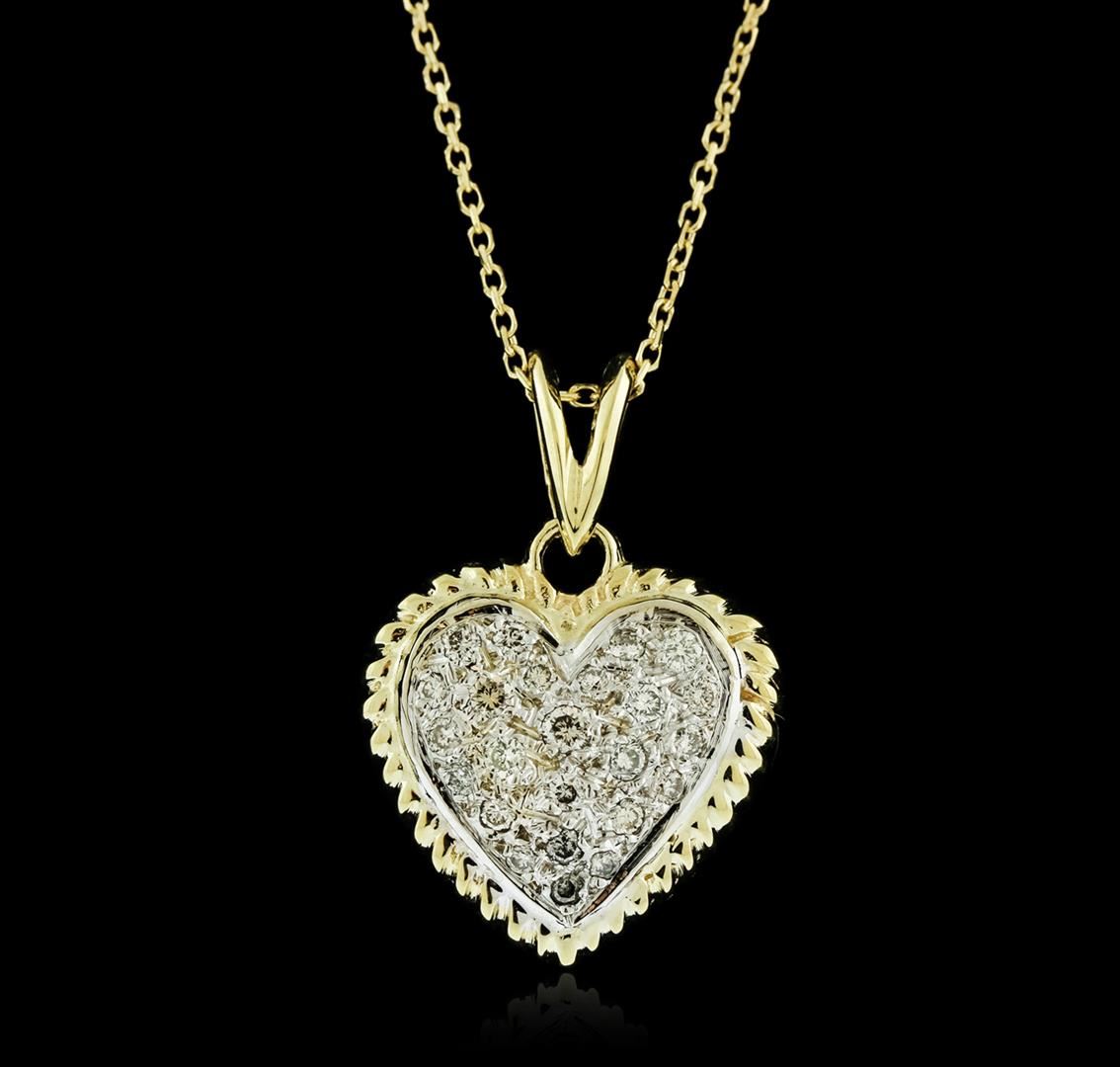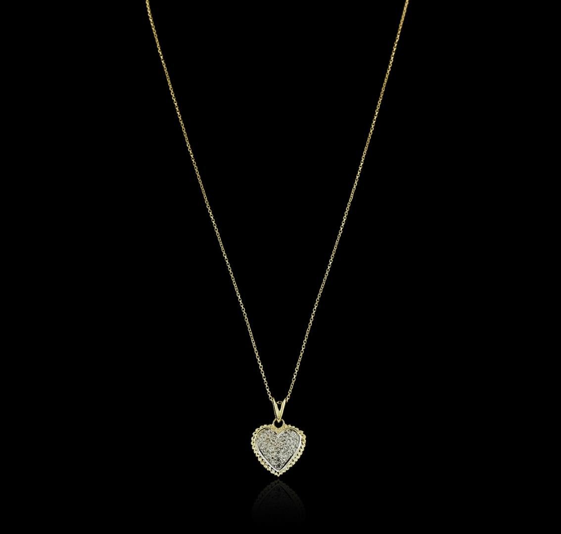One pendant with chain featuring: 14KT yellow gold weighing 4.60 grams containing diamonds with a total weight of 0.50ct.