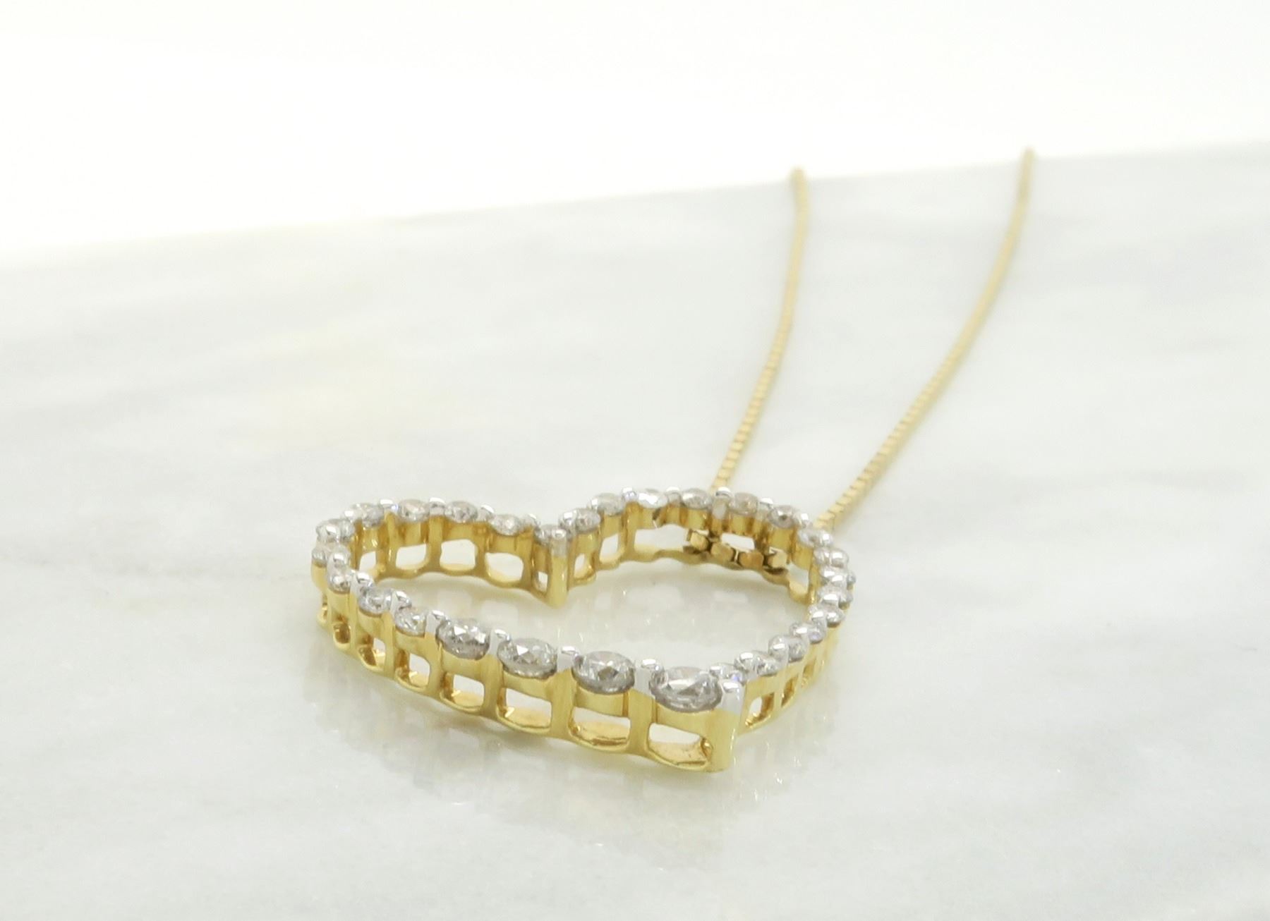 One 14KT Yellow Gold 0.50ctw Diamond Pendant with Chain. Round Diamonds with a total weight of 0.50cts with a color of I-K and clarity of I-2. Length of this pendant with chain is 20 inches. Total weight of this pendant with chain is 3.1 grams.