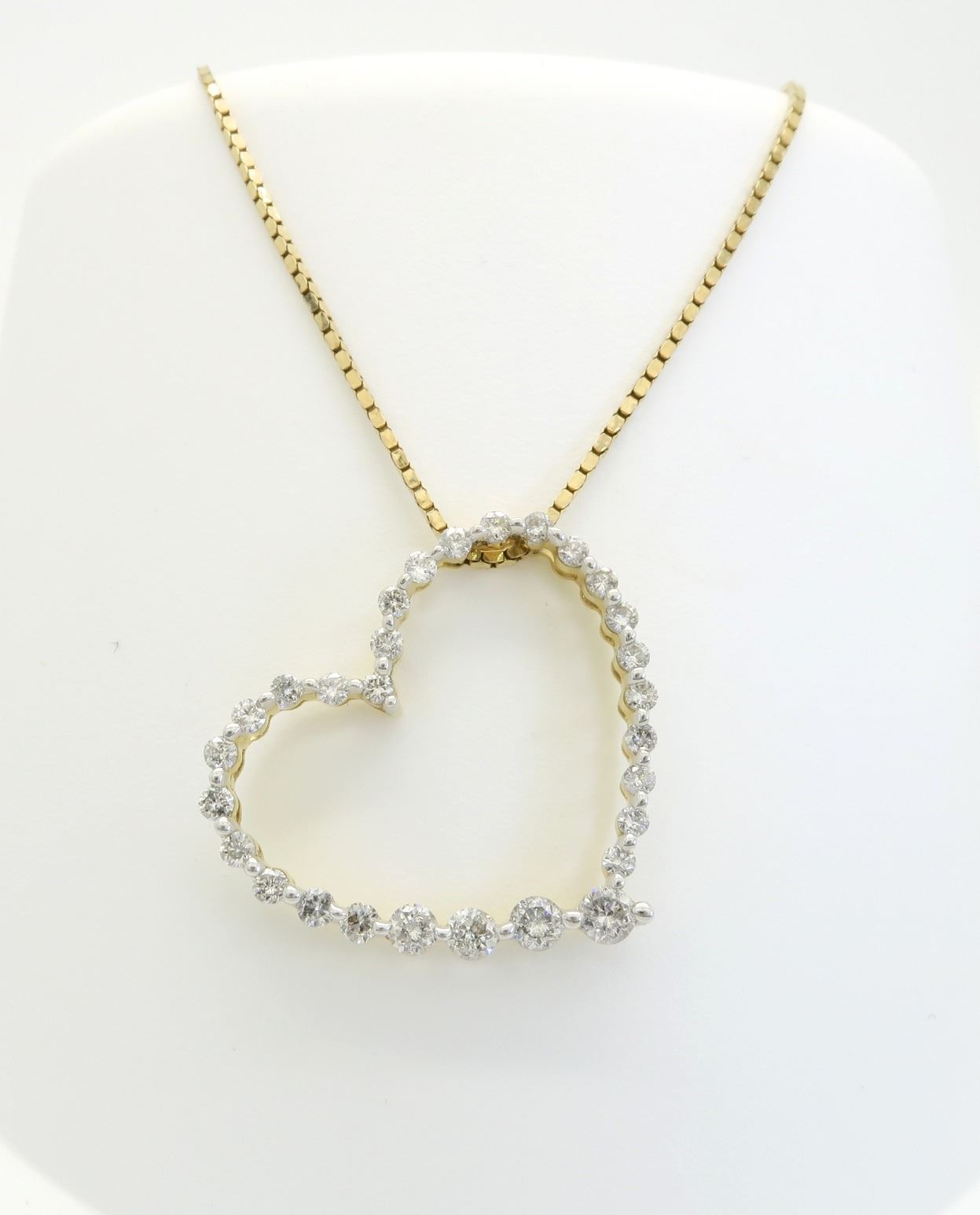 One 14KT Yellow Gold 0.50ctw Diamond Pendant with Chain. Round Diamonds with a total weight of 0.50cts with a color of I-K and clarity of I-2. Length of this pendant with chain is 20 inches. Total weight of this pendant with chain is 3.1 grams.