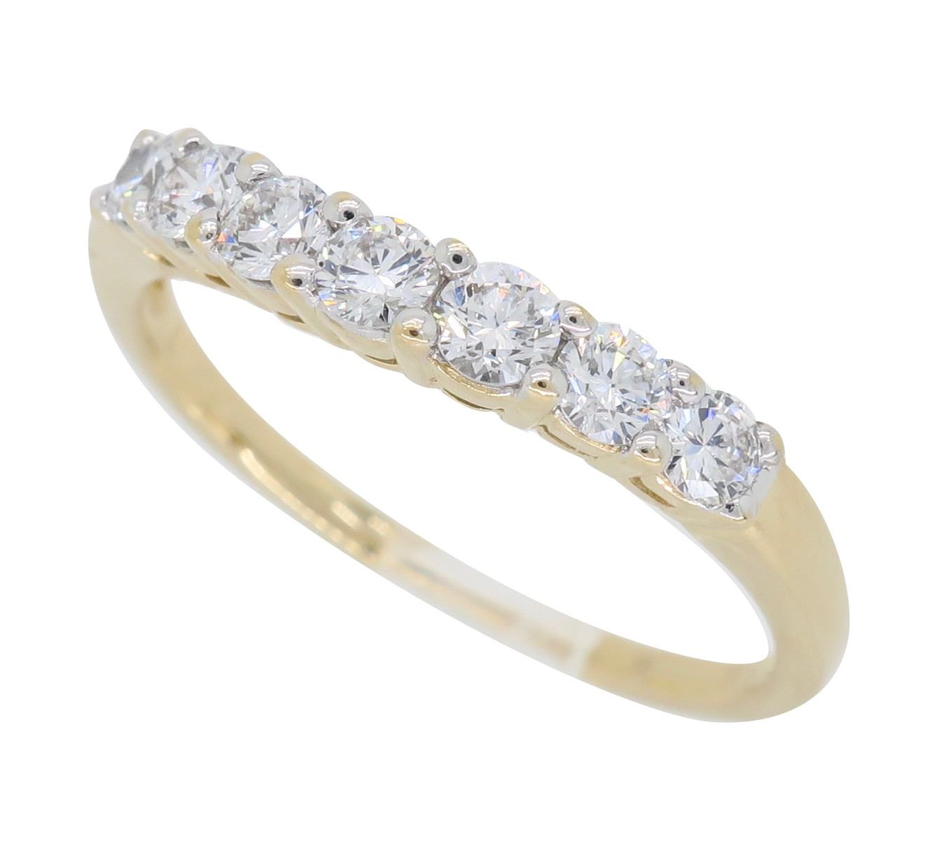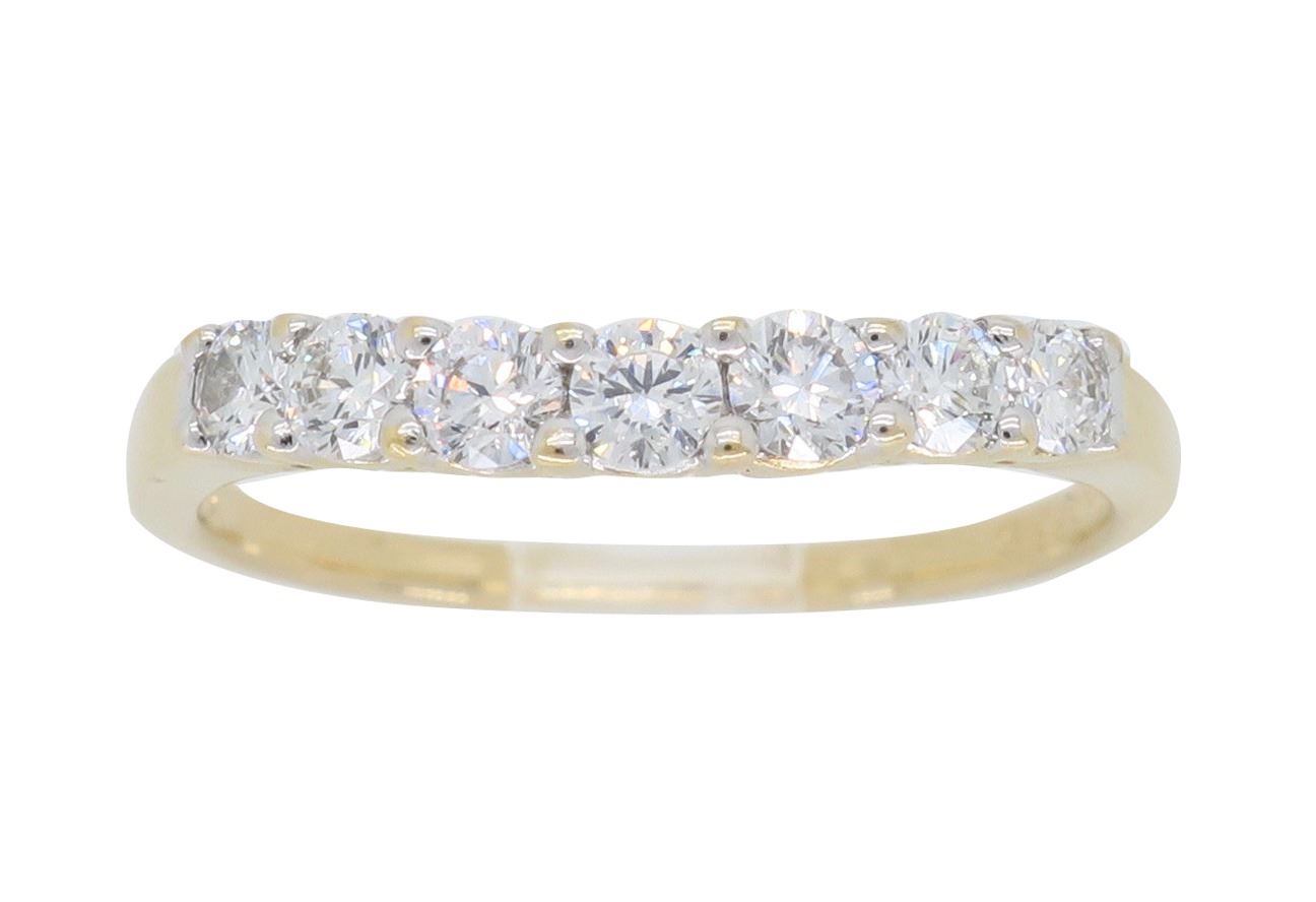 One 14KT Yellow Gold 0.50ctw Diamond Ring. (7) Round Diamonds with a total weight of 0.50cts with a color of G-I and clarity of VS-2 to SI-2. Total weight of this ring is 2.5 grams. Ring size is 7.75.