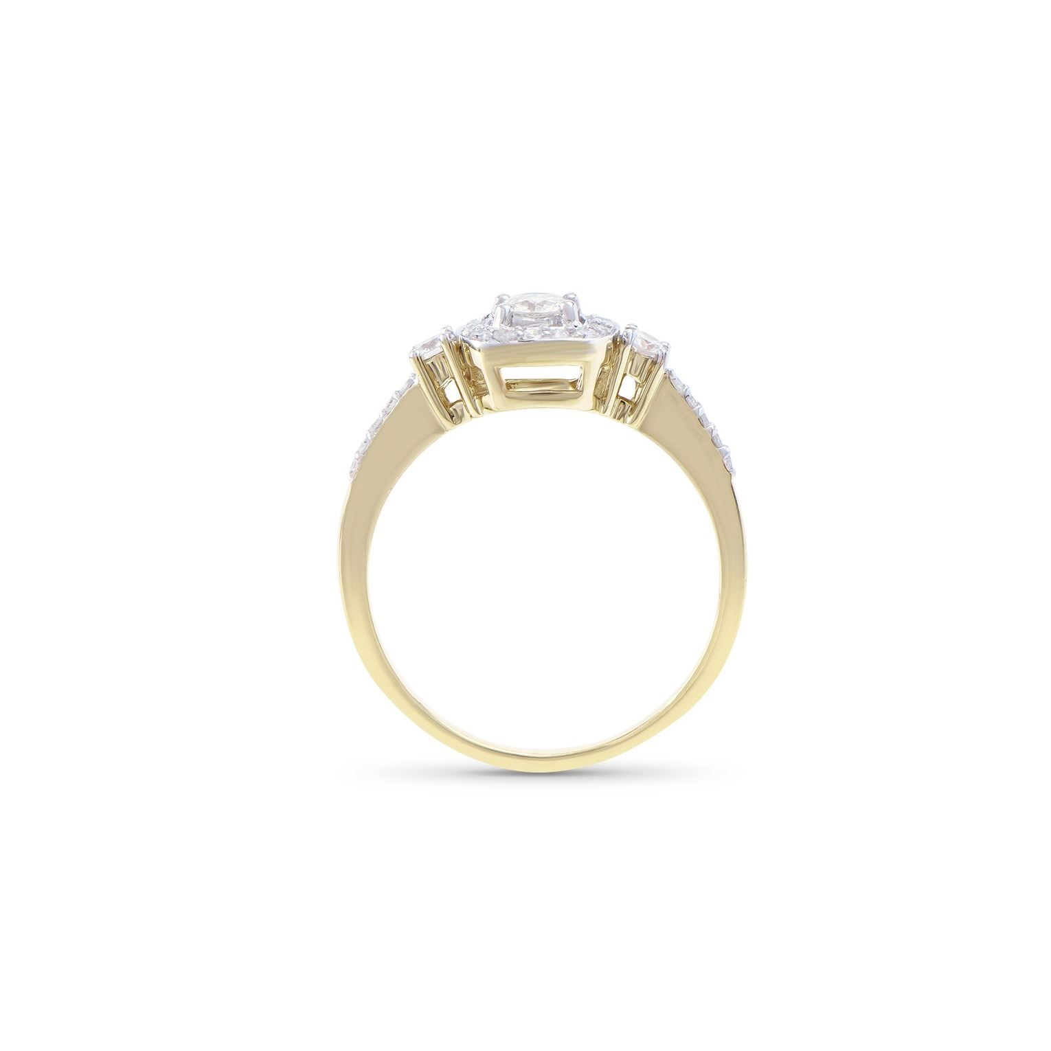 (1) round Diamond with a total weight of 0.22cts with a color of H-I and clarity of I1-I2. (2) round Diamonds with a total weight of 0.10cts with a color of H-I and clarity of I1-I2. (22) round Diamonds with a total weight of 0.18cts with a color of H-I and clarity of I1-I2. Total weight of this ring is 2.1 grams. Ring size is 7.5.