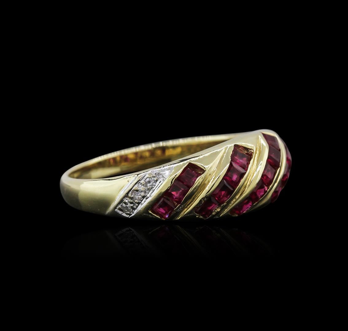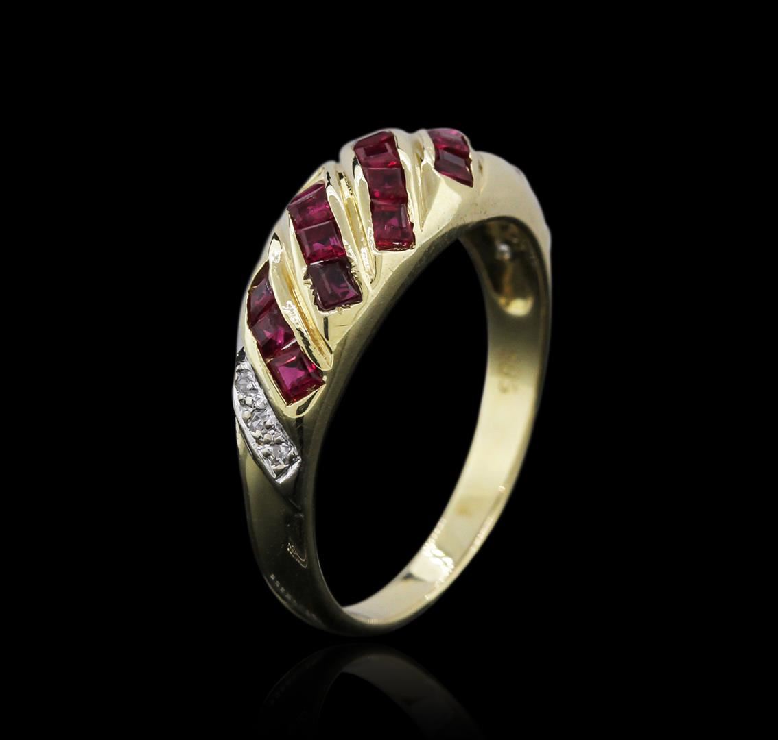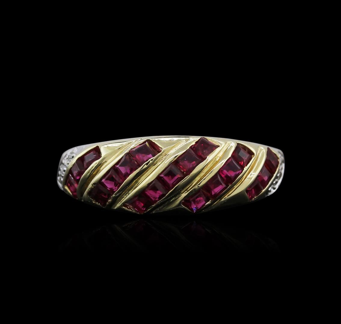 One ring featuring: 14KT yellow gold weighing 3.32 grams containing rubies with a total weight of 0.50ct and diamonds with a total weight of 0.05ct.