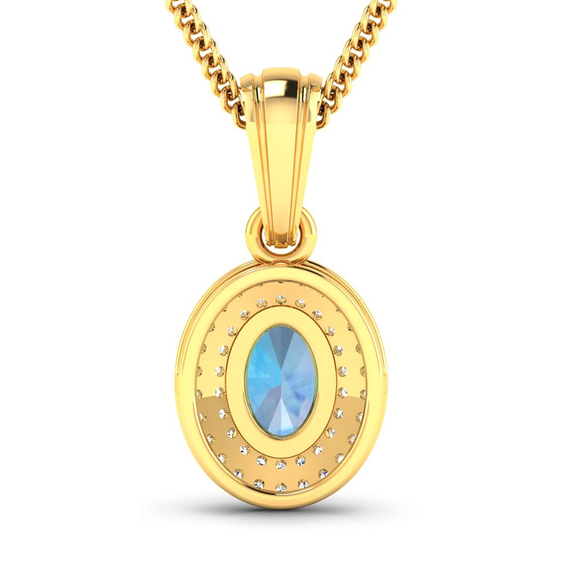 Aquamarine Oval 7x5mm - 1Pc + White Diamond F/C Round 0.90mm - 48Pcs (I1-I2/I color) Total weight of gemstone is 0.51cts. Total Diamond weight is 0.16cts. Total weight of this pendant is 1.4 grams.